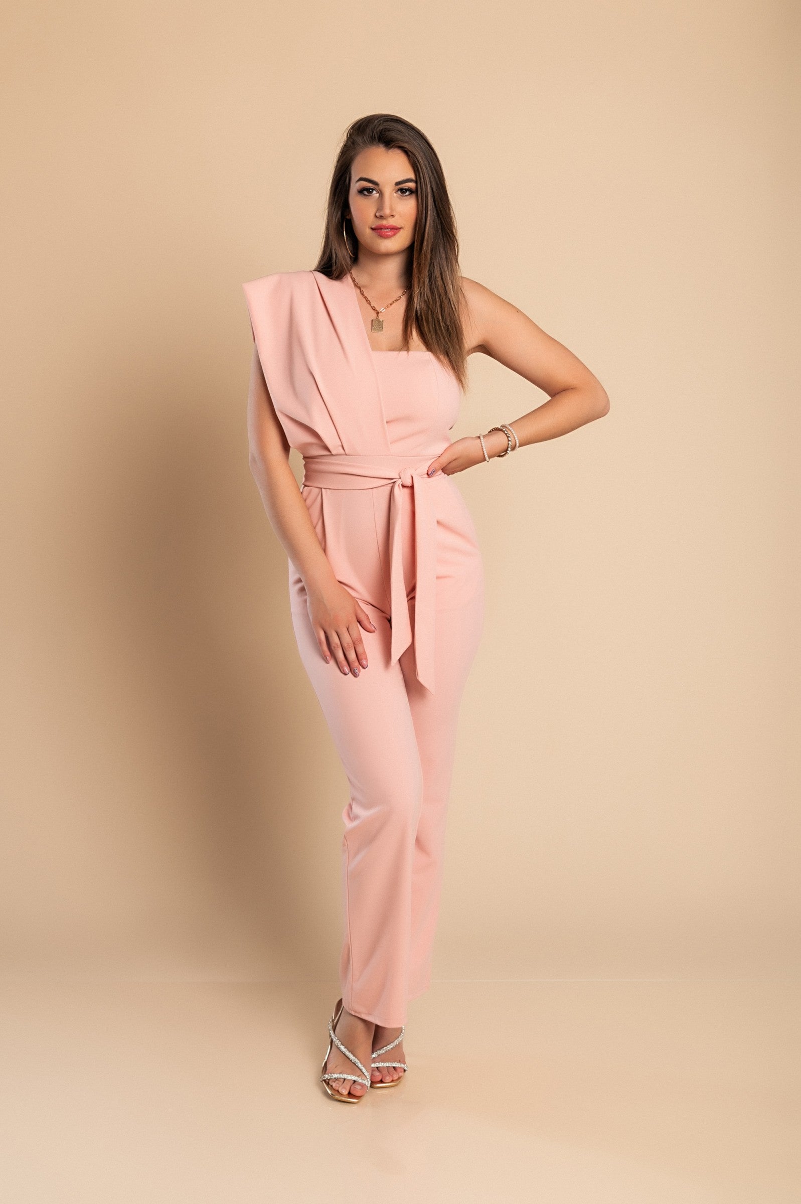 The Elegant Jumpsuit Chia in light pink is a stunning addition to any wardrobe, designed to provide both style and comfort. This jumpsuit features an asymmetric cut that adds a unique flair, making it perfect for a variety of occasions, from elegant events to casual outings. The soft and compact high-quality fabric ensures that you feel comfortable while looking chic.