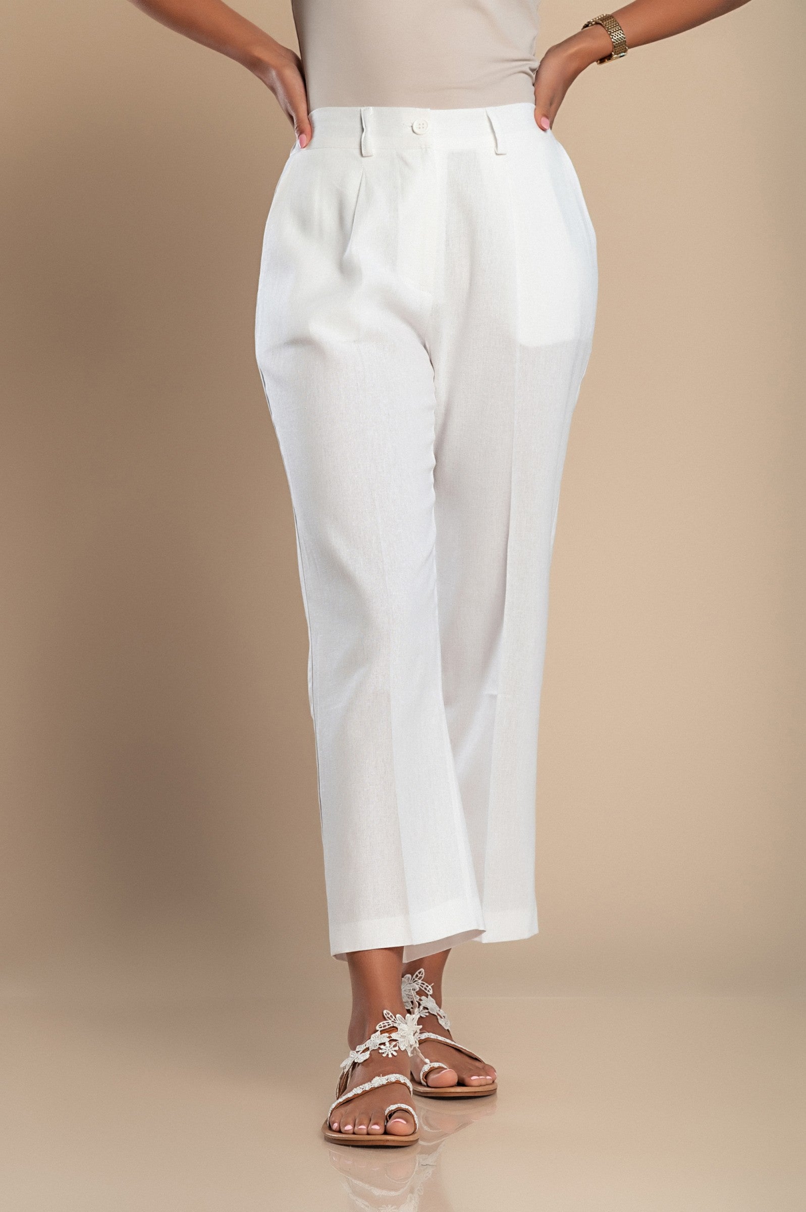 In summary, our Elegant Linen Trousers in White are a must-have for anyone looking to enhance their wardrobe with a stylish and comfortable option. With their high-quality fabric, thoughtful design features, and Italian craftsmanship, these trousers are sure to become a favorite in your collection.