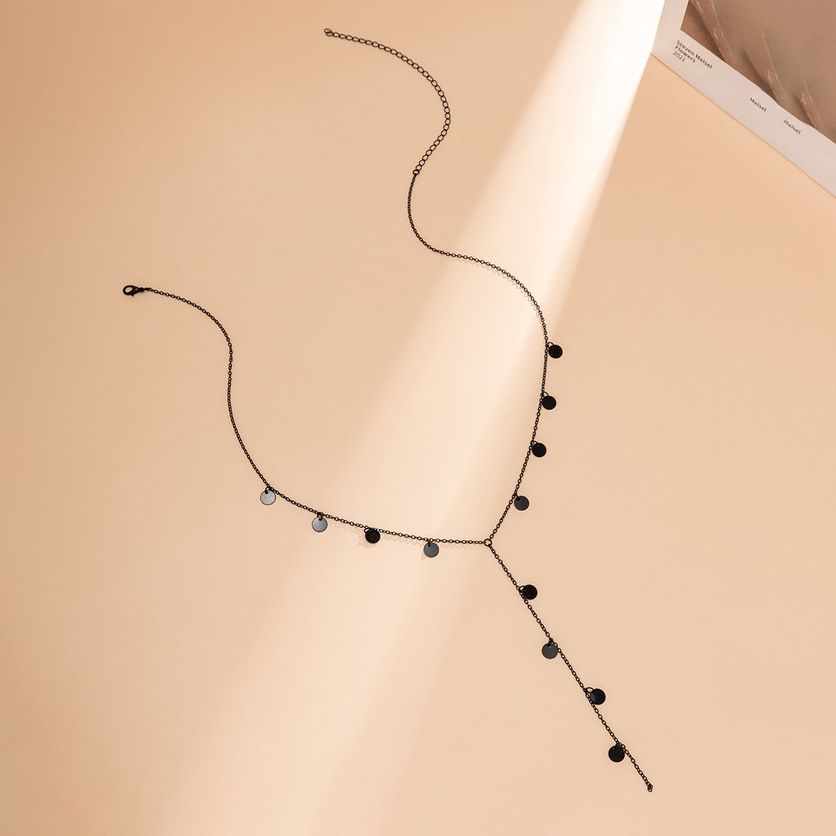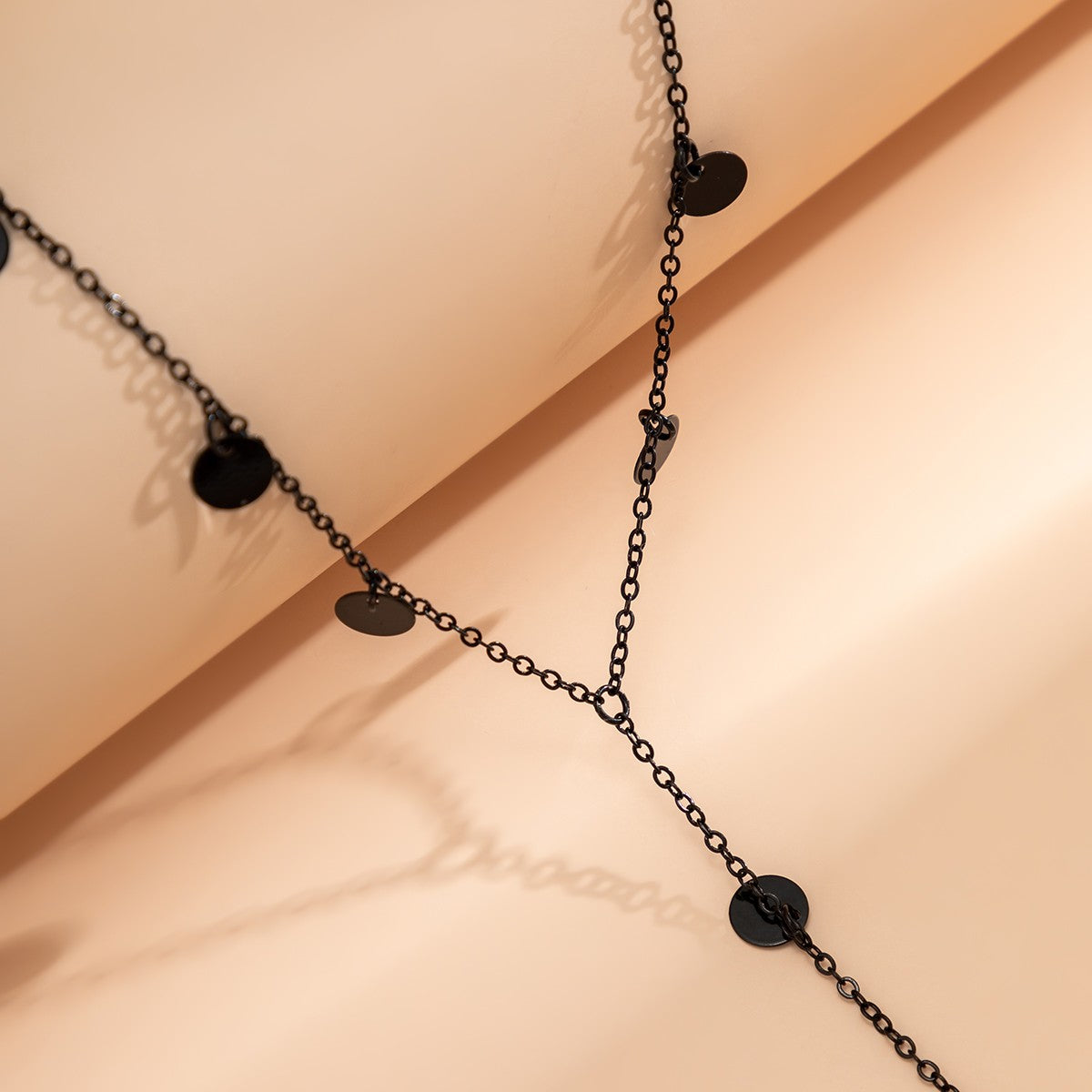 Introducing our Elegant Necklace with Decorative Pendants in a stunning black hue, designed to elevate your fashion game. This longer necklace is not just an accessory; it's a statement piece that can brighten up any outfit, whether you're dressing up for a special occasion or adding flair to your everyday wear.