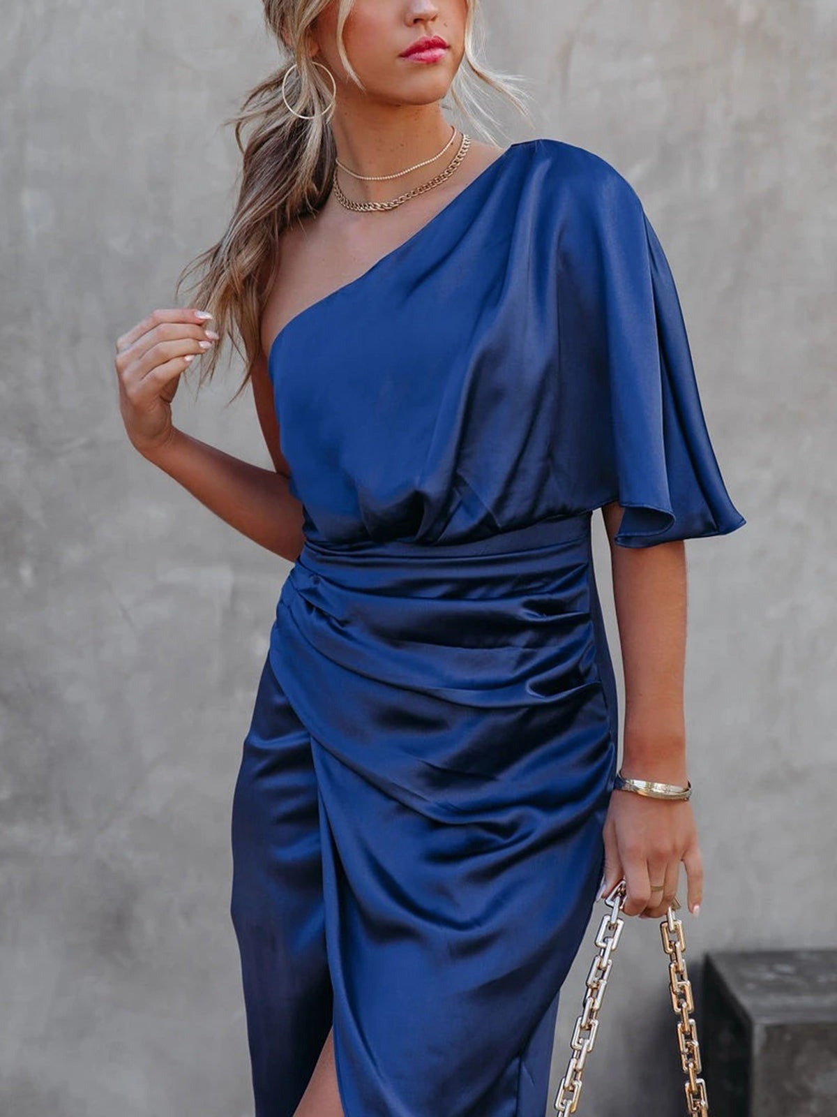 Whether you're dressing up for a special event or looking for something stylish for a night out, the Elegant One-Shoulder Midi Dress is the perfect choice. Pair it with heels for a formal look or dress it down with sandals for a more casual vibe. Its versatility makes it a must-have addition to your wardrobe.