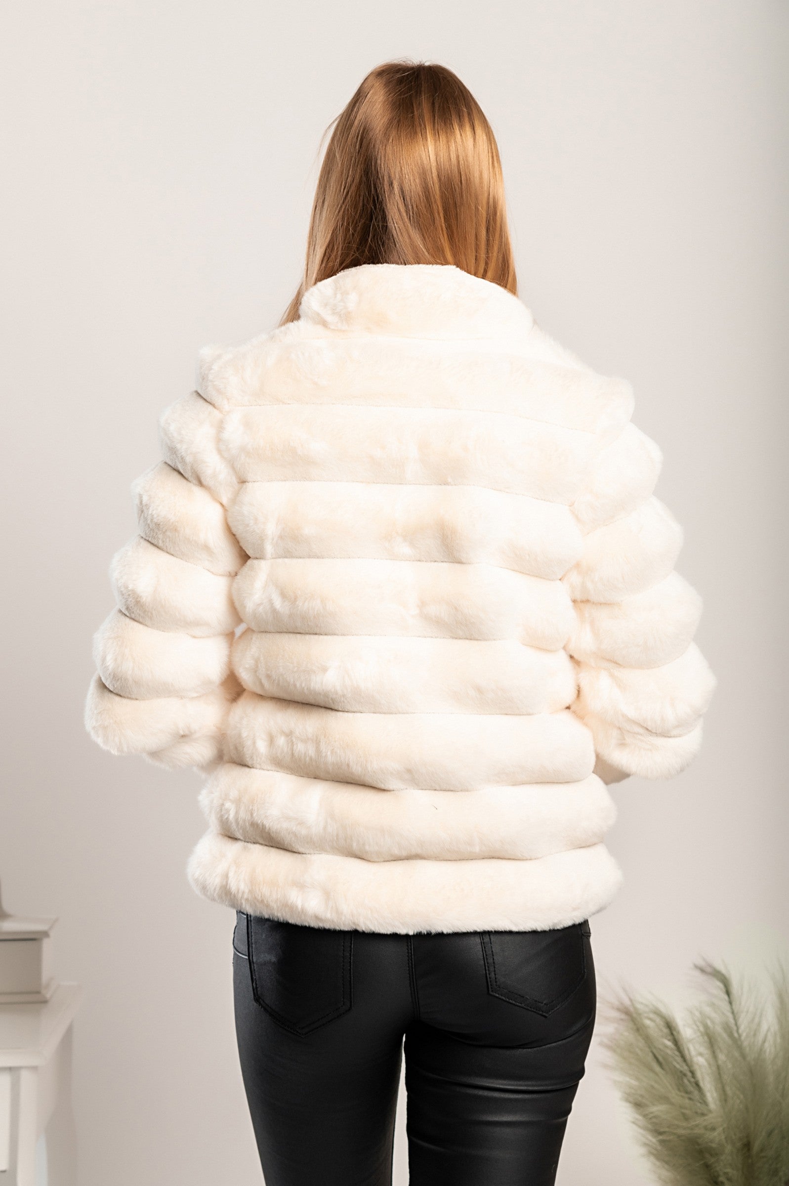 The Elegant Short Faux Fur Coat Centania in white is a stunning addition to any wardrobe. Crafted from high-quality synthetic materials, this coat offers a luxurious feel while ensuring warmth and comfort. The soft faux fur fabric is perfect for chilly days, making it an ideal choice for both casual outings and more formal events.