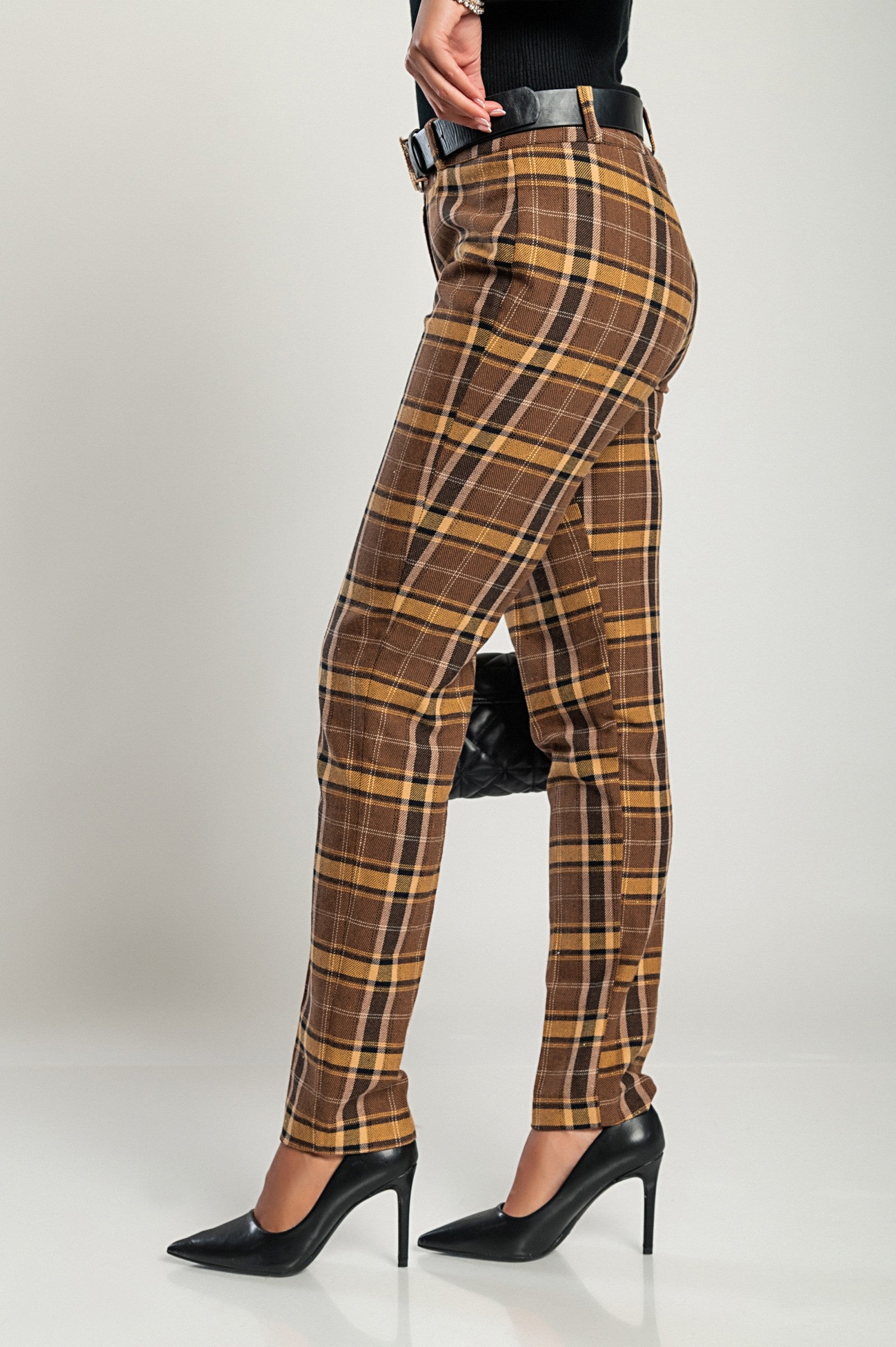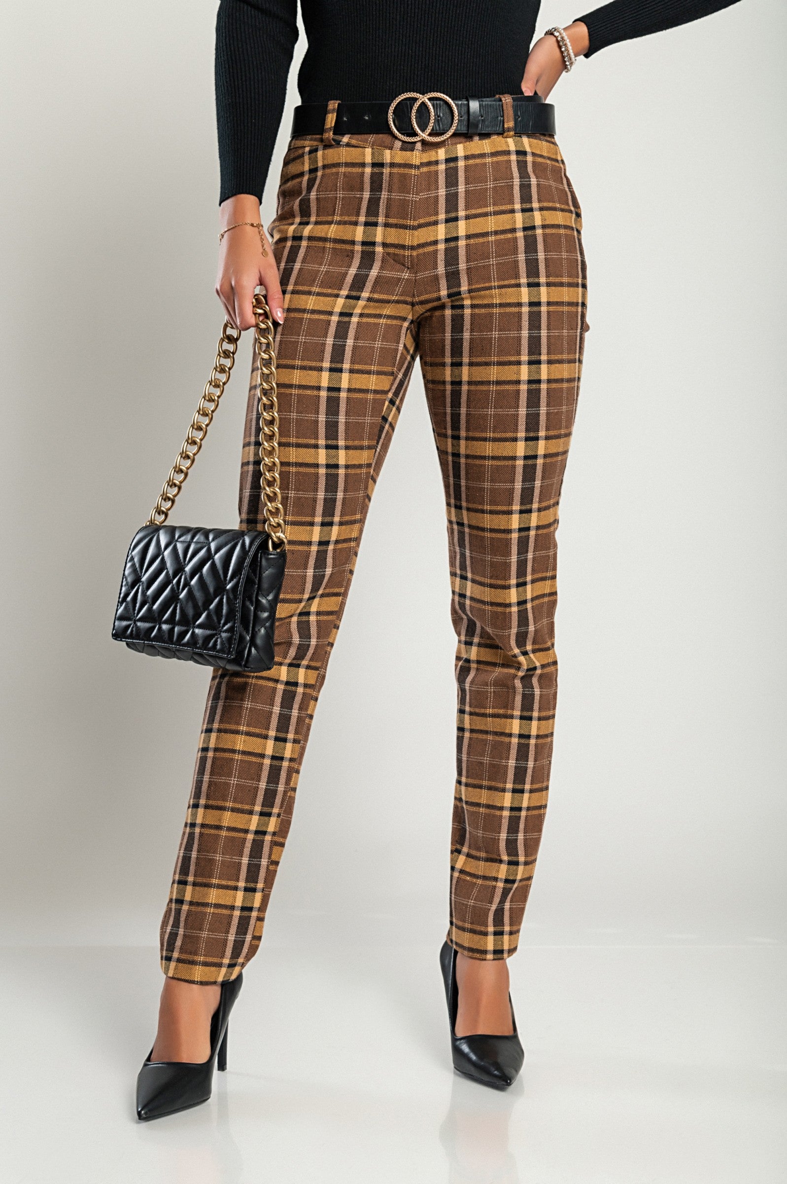 These trousers feature a chic mustard color that adds a pop of brightness to your wardrobe. The straight leg design is not only trendy but also versatile, allowing you to pair them effortlessly with your favorite shirts or blouses. The middle belt adds a touch of sophistication, while the zip and button closure ensures a secure fit.