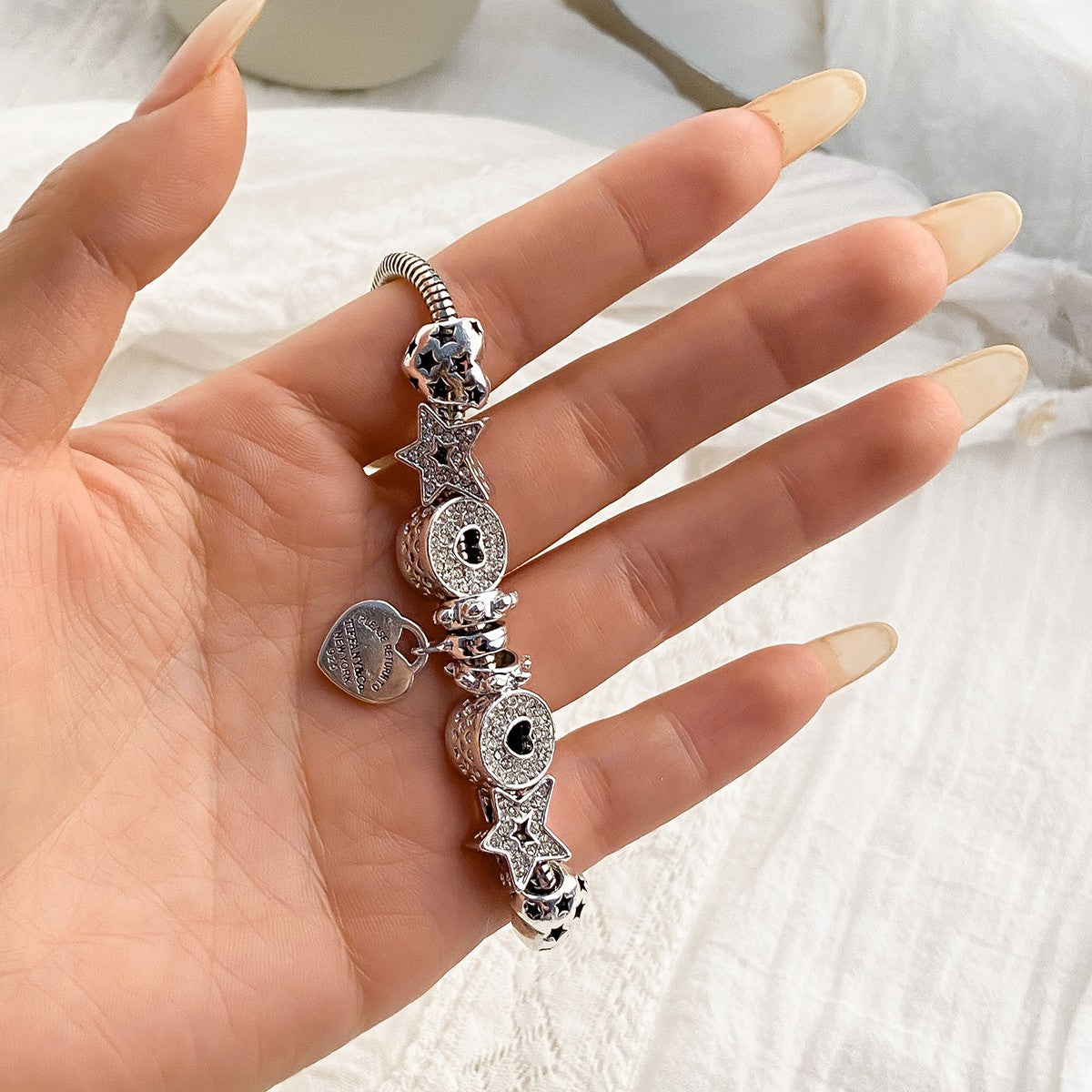Okrasni obeski in kamenčki na zapestnici dodajo edinstvenost in privlačnost. Ti detajli ne le da izboljšajo estetski videz zapestnice, temveč tudi omogočajo, da se zapestnica prilagodi različnim stilom in priložnostim. Ne glede na to, ali gre za vsakodnevno nošenje ali posebne priložnosti, ta zapestnica bo vedno prava izbira.