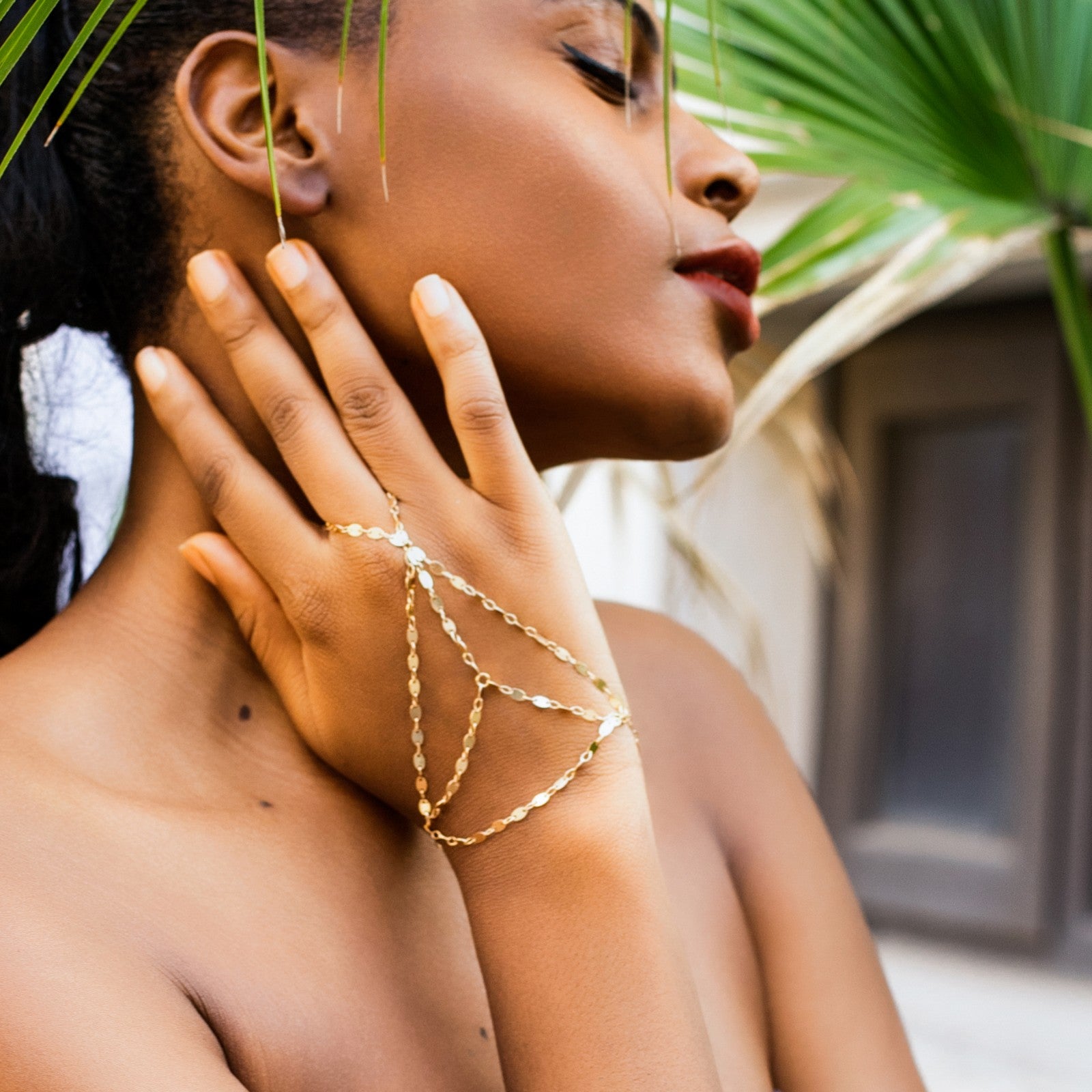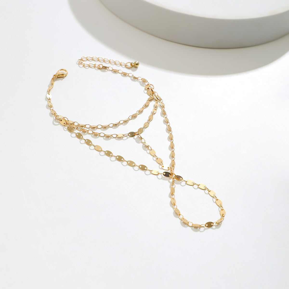 Odkrijte našo elegantno zapestnico z okrasnimi detajli v zlatem tonu, ki je popolna izbira za vsako modno kombinacijo. Ta čudovita zapestnica je izdelana iz tankih verižic, ki se nežno ovijajo okoli vašega zapestja, in vključuje verižico za okoli prsta, kar ji daje edinstven in privlačen videz. Ne glede na to, ali jo nosite za posebne priložnosti ali vsakodnevno, bo ta zapestnica zagotovo pritegnila pozornost.