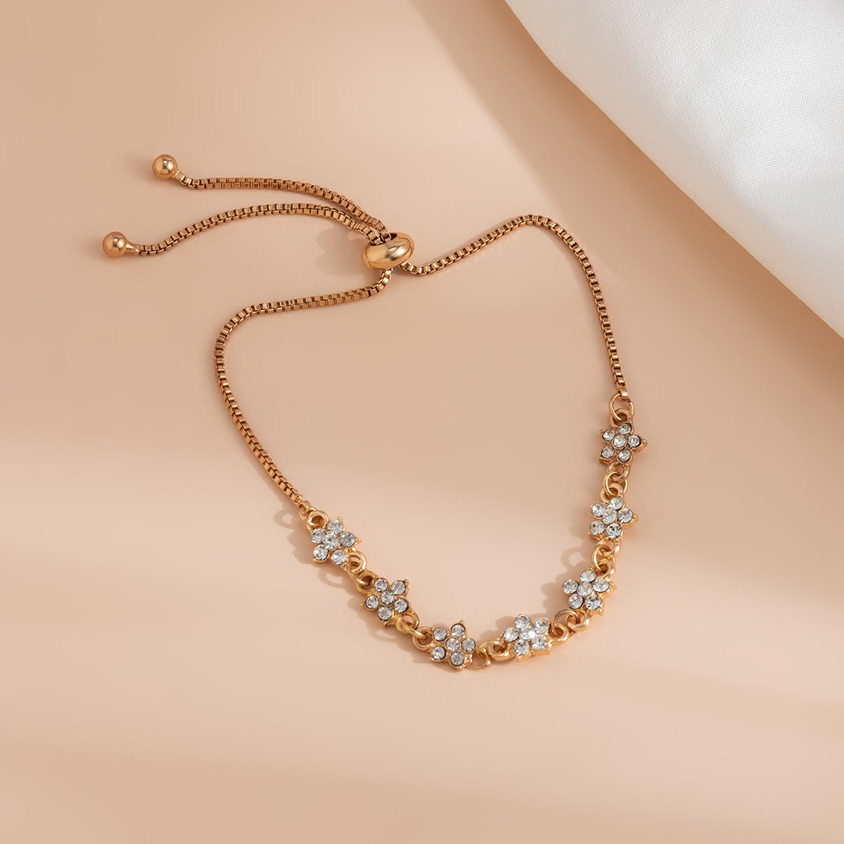 Ne zamudite priložnosti, da obogatite svojo zbirko nakita z našo elegantno zapestnico z umetnimi kamenčki v zlati barvi. Naročite jo še danes in uživajte v njenem čaru ter lepoti, ki jo prinaša v vašo modno izbiro.