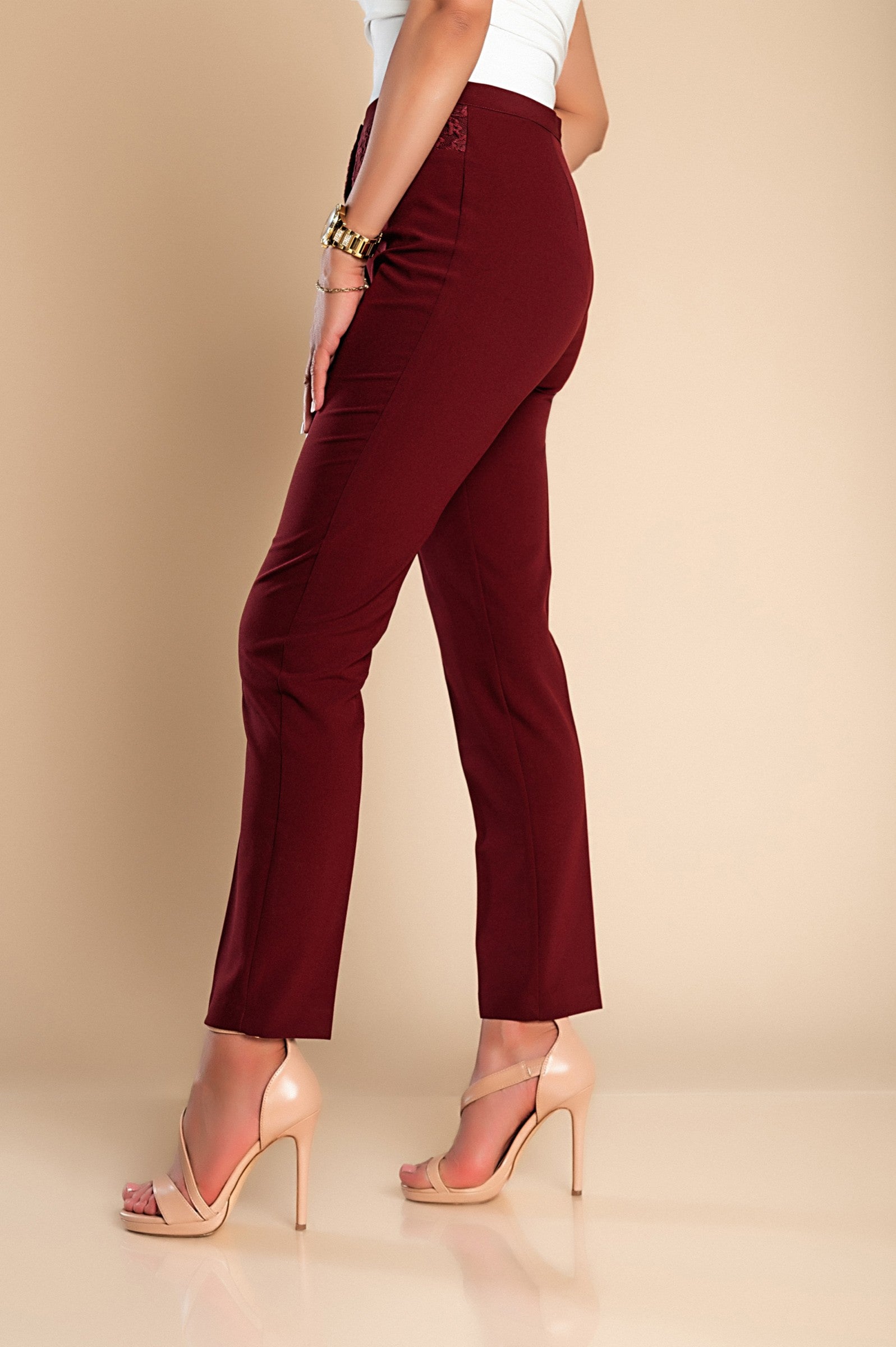 Elegantne dolge hlače s čipko Concha v bordo barvi so popolna izbira za vsako priložnost, bodisi za poslovne sestanke, večerne izhode ali sproščene družabne dogodke. Te hlače so zasnovane z mislijo na udobje in stil, kar jih naredi nepogrešljiv kos v vaši garderobi.