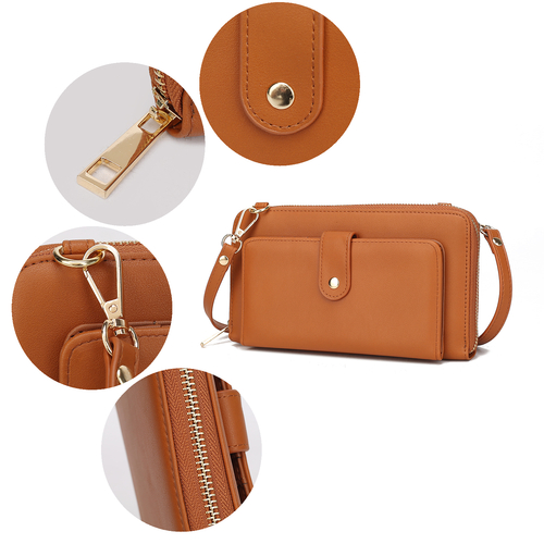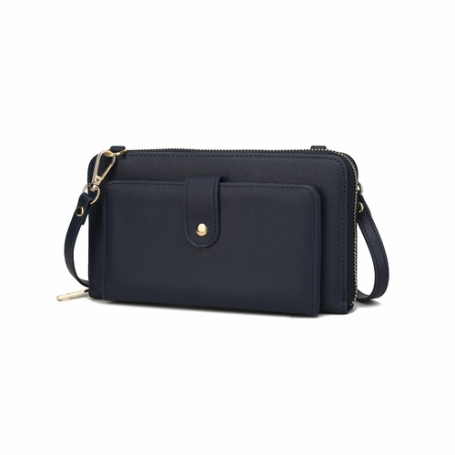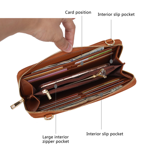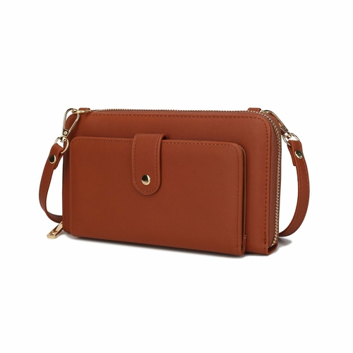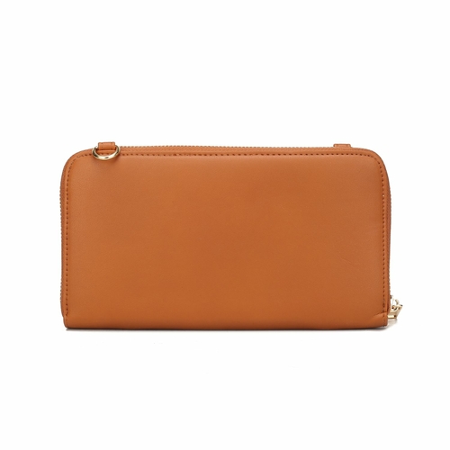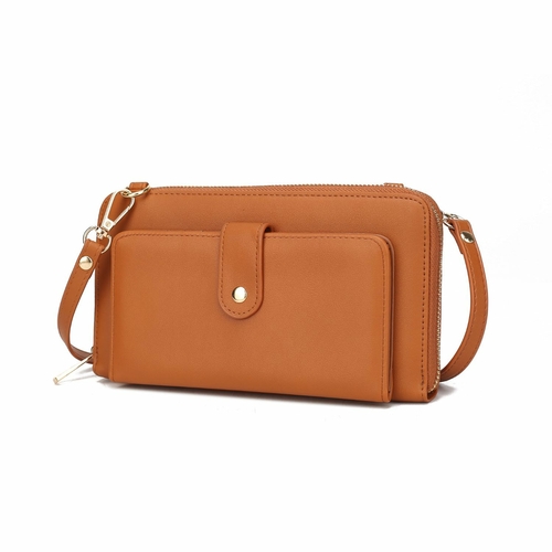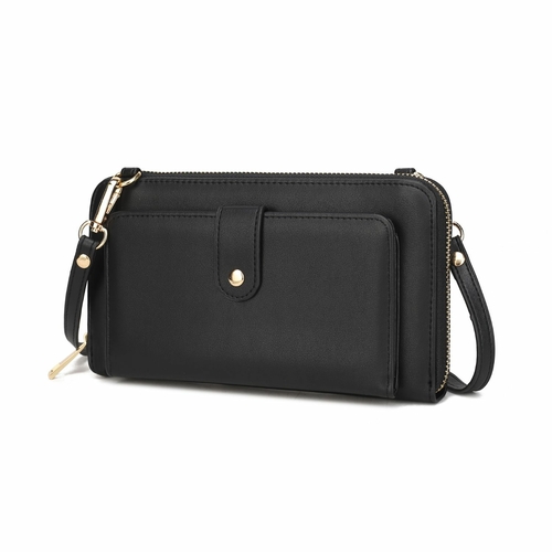 Designed in smooth luxury vegan leather, the Everly Wallet Crossbody bag is a compact wonder. A snap pocket opens to a compartment to safely store 14 credit cards. When you open the zippered compartment, you will get plenty of room for 8 credit card slots, cash, and a zippered compartment for coins. A detachable strap perfects its versatility factor, so wear it hands-free on days when you want to travel light, or it can be carried alone inside your handbag. The Everly Wallet Crossbody bag is designed with gold-tone embellishments.Measurements: 9” L x 5” H x 1” WThe removable shoulder strap extends to 43” in