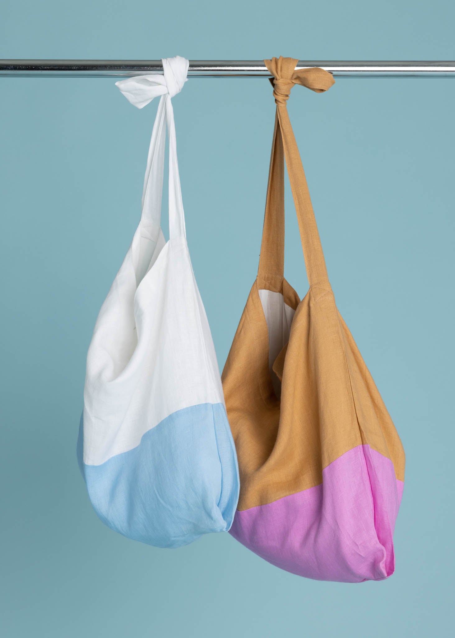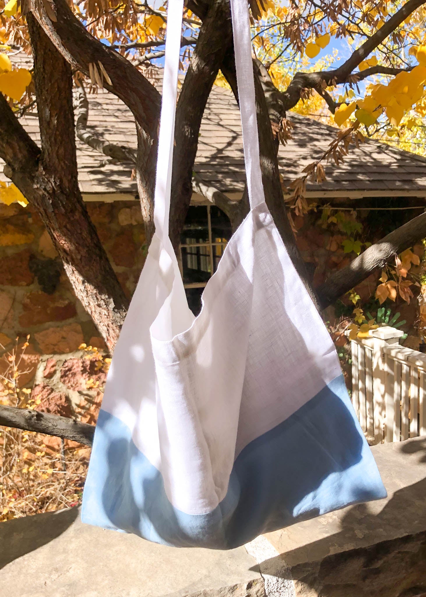 Introducing the Farmers Market Bag in White & Sky Linen, a stylish and eco-friendly accessory designed for the conscious shopper. Made from organic GOTS certified linen, this bag not only looks great but also supports sustainable practices. Whether you're heading to the local farmers market, grocery store, or just out for a casual day, this bag is the perfect companion for all your shopping needs.