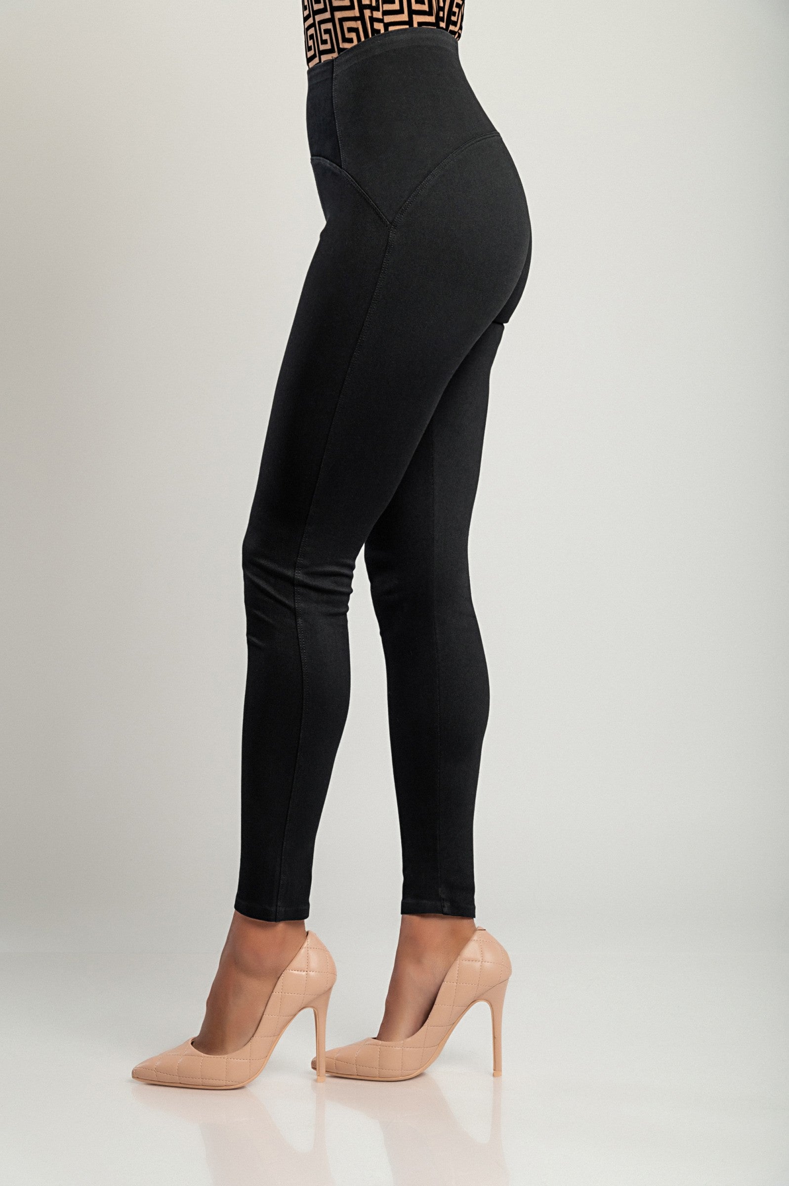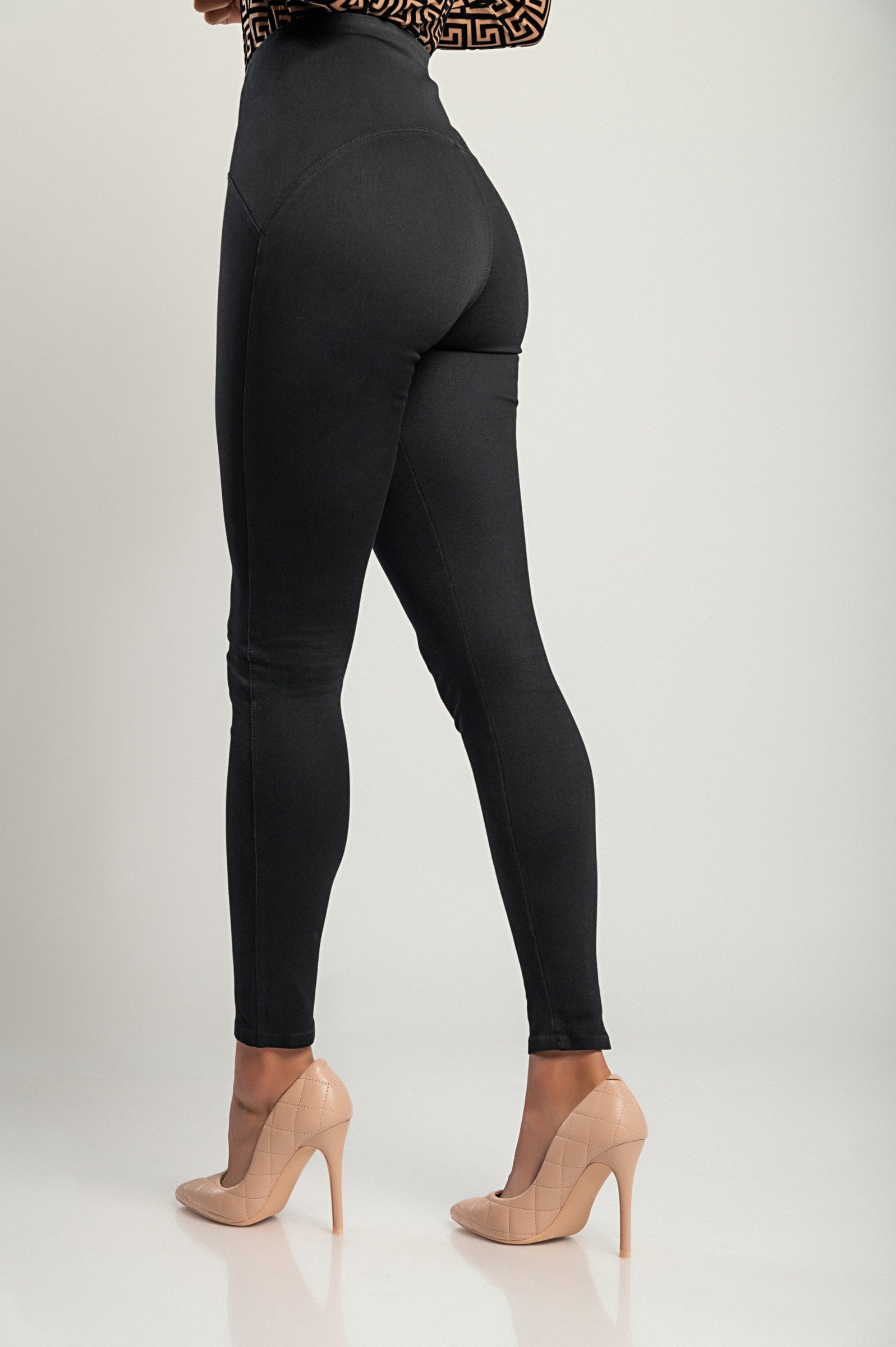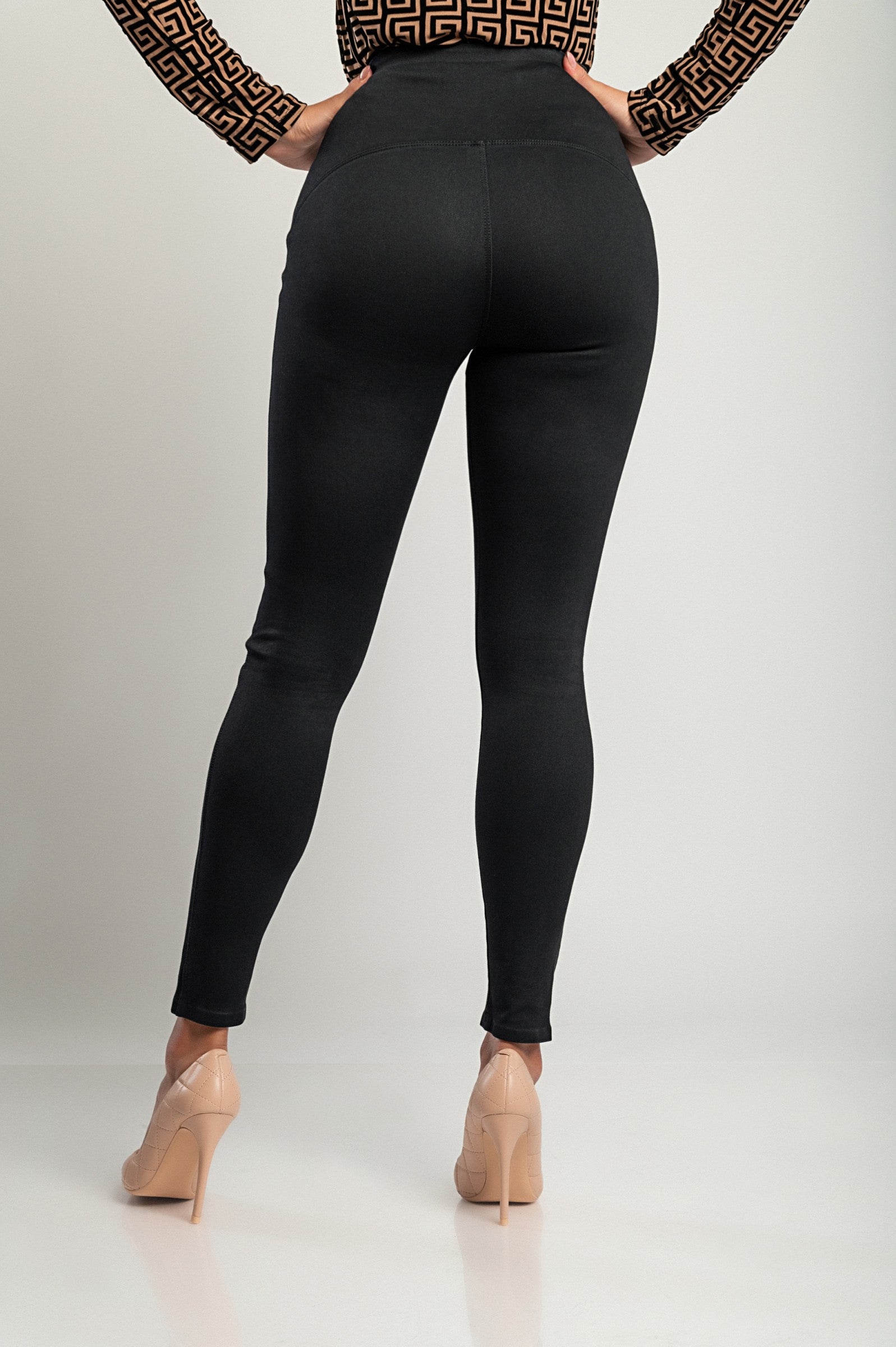 Available in a classic black color, these leggings are incredibly versatile and can be paired with a variety of tops and footwear. Dress them up with a stylish blouse and heels for a night out, or keep it casual with a t-shirt and sneakers for a day of errands. The sleek design and flattering fit make these leggings a must-have addition to your wardrobe.