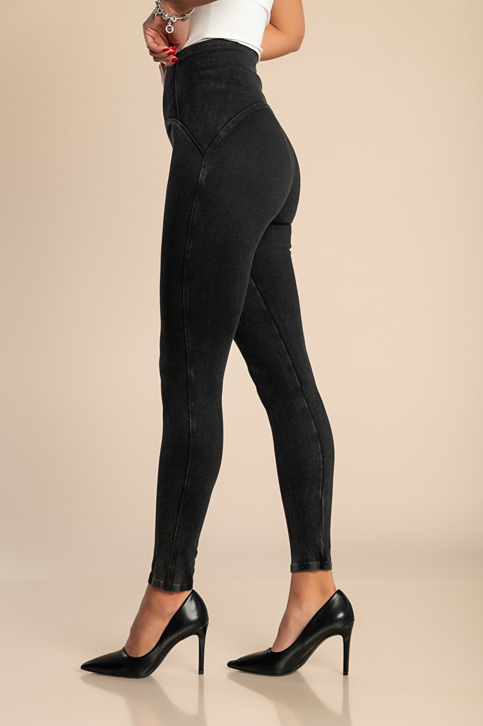 Our gray fashion leggings are not just about comfort; they also boast a stylish design that can be easily paired with various tops and footwear. The long, tight legs create a sleek look that elongates your legs, making them perfect for both casual outings and more dressed-up occasions. You can wear them with a cozy oversized sweater for a relaxed look or dress them up with a fitted blouse and ankle boots.