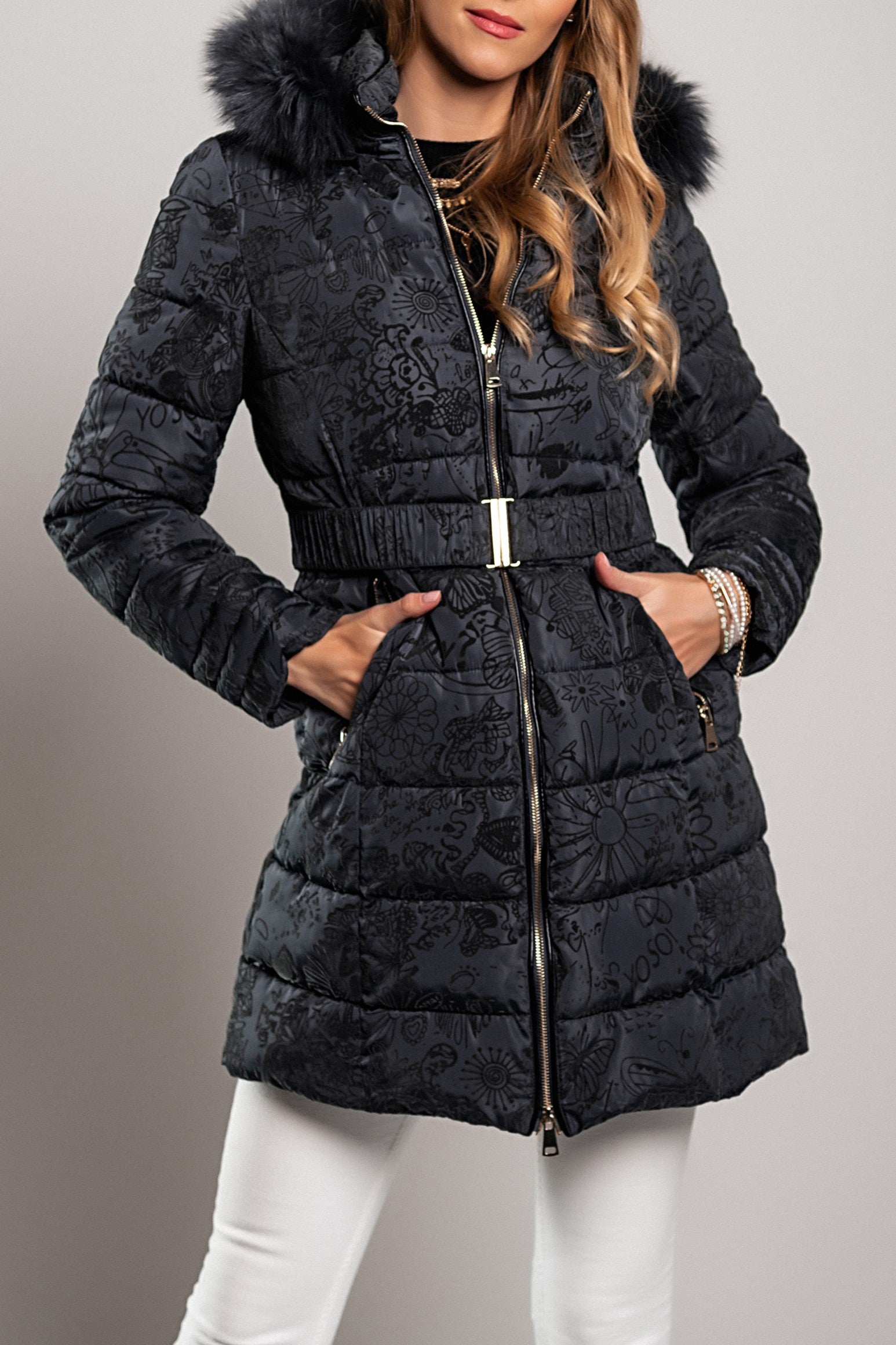 In summary, the Fashion Print Long Padded Winter Jacket Remma in Dark Gray is an essential addition to any winter wardrobe. With its stylish design, high-quality materials, and functional features, it offers both warmth and elegance. Don't miss out on the opportunity to elevate your winter fashion with this beautiful jacket.