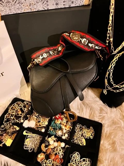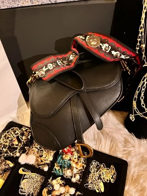 This handbag features a chic saddlebag shape that is both trendy and timeless. The short shoulder strap is adorned with polished “C” and “D” accents on either end, adding a touch of sophistication to the overall design. Additionally, the prominent hanging Dior “D” charm enhances its luxurious appeal, making it a statement piece in your wardrobe.