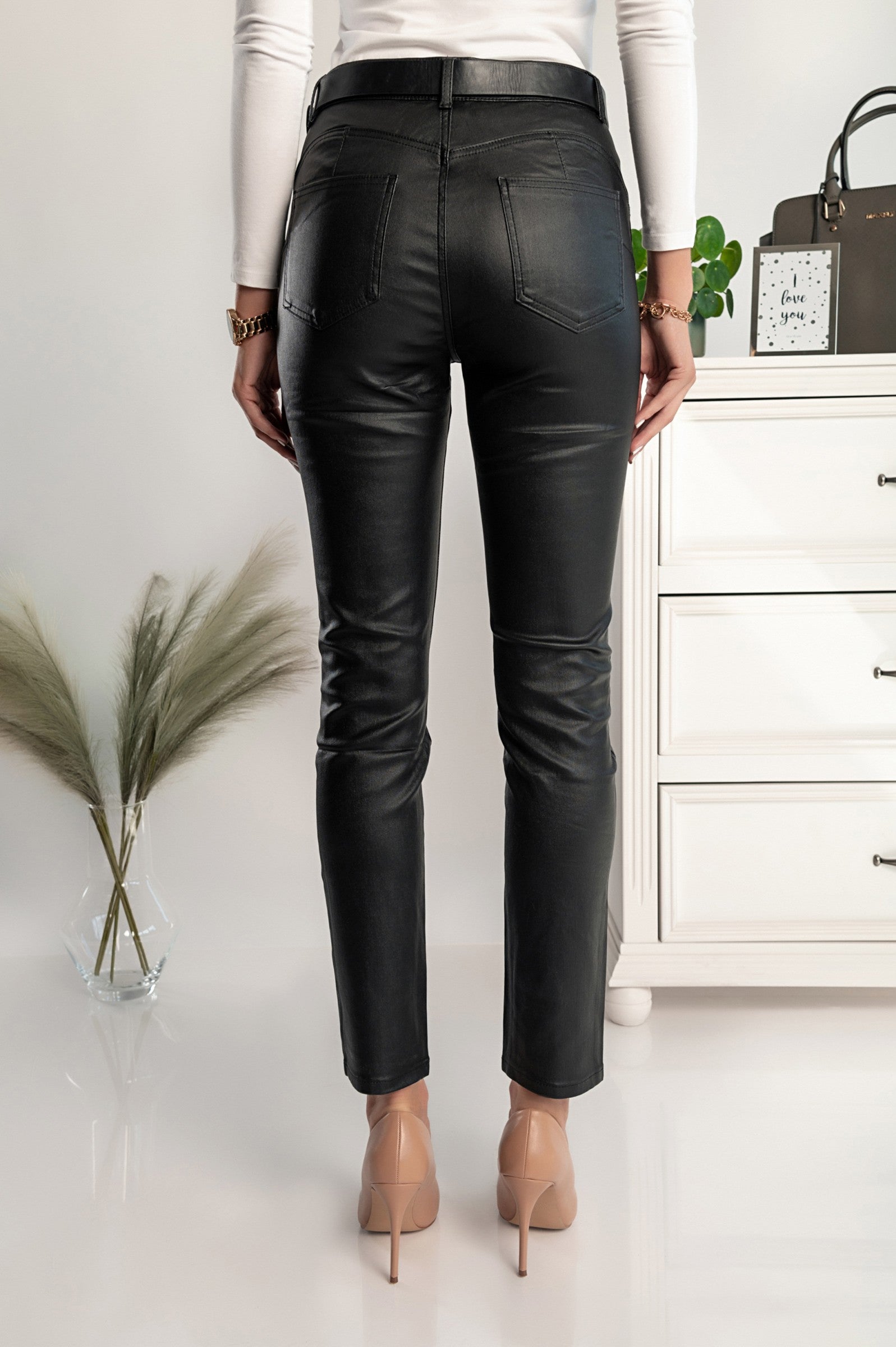 The Faux Leather Tight Pants Roda in Black can be effortlessly styled with your favorite t-shirt for a casual day out or dressed up with a blouse for a more sophisticated look. Pair them with ankle boots or heels to elevate your outfit, or wear them with sneakers for a laid-back vibe. The versatility of these pants makes them a staple piece that can be worn year-round.