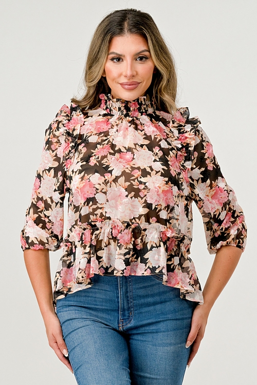 To maintain the beauty of your Floral High-Neck Ruffle Blouse, we recommend hand washing in cold water and laying it flat to dry. Avoid bleach and direct sunlight to preserve the vibrant colors of the floral print. With proper care, this blouse will remain a staple in your wardrobe for years to come.