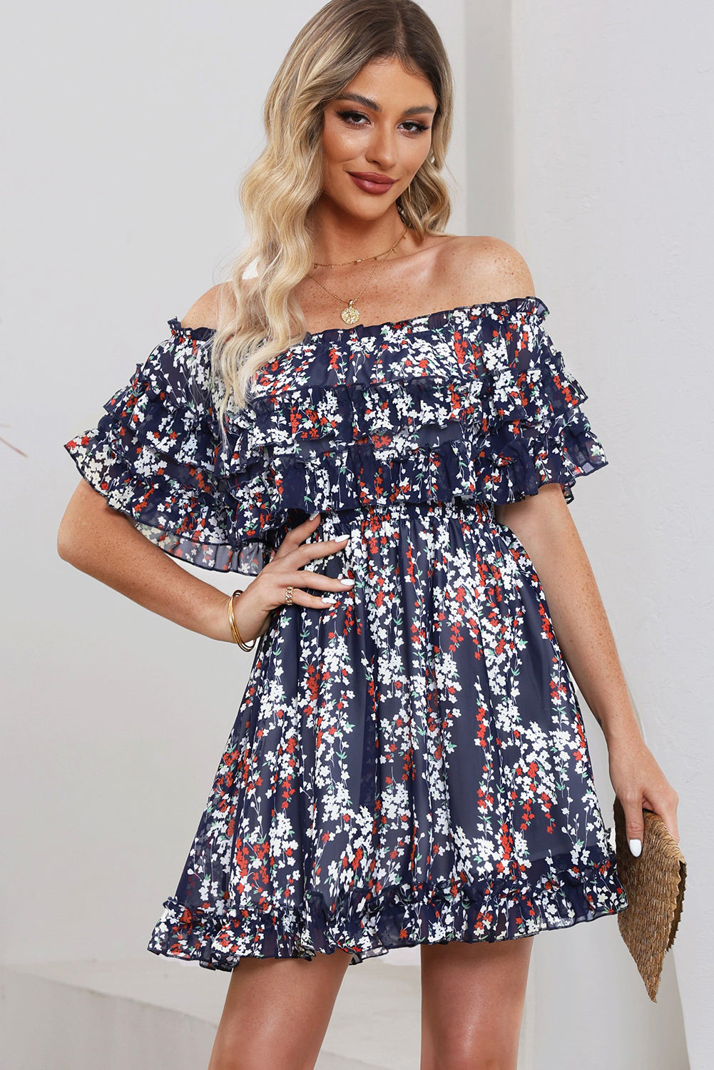 The Floral Off-Shoulder Ruffle Hem Dress features a delightful floral pattern that is both trendy and timeless. The off-shoulder neckline not only enhances your silhouette but also keeps you cool during those hot summer days. The layered ruffle hem adds a playful touch, making it ideal for twirling on the dance floor or enjoying a picnic in the park.