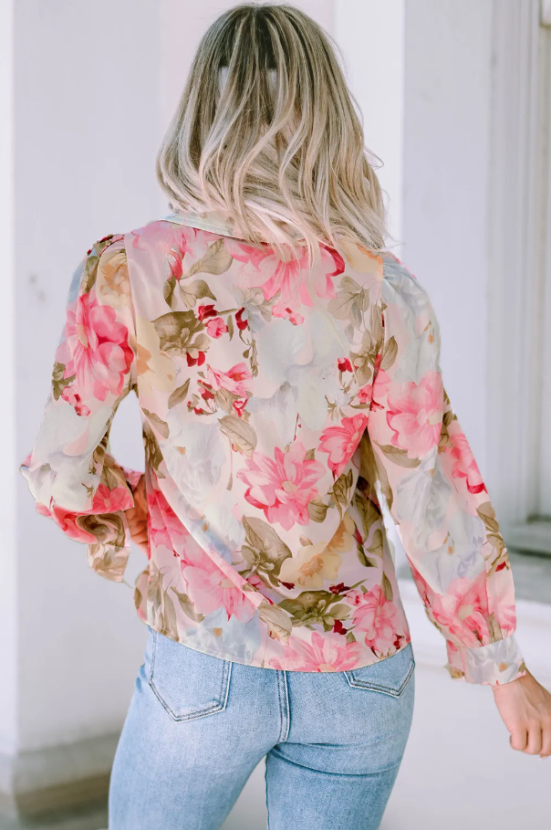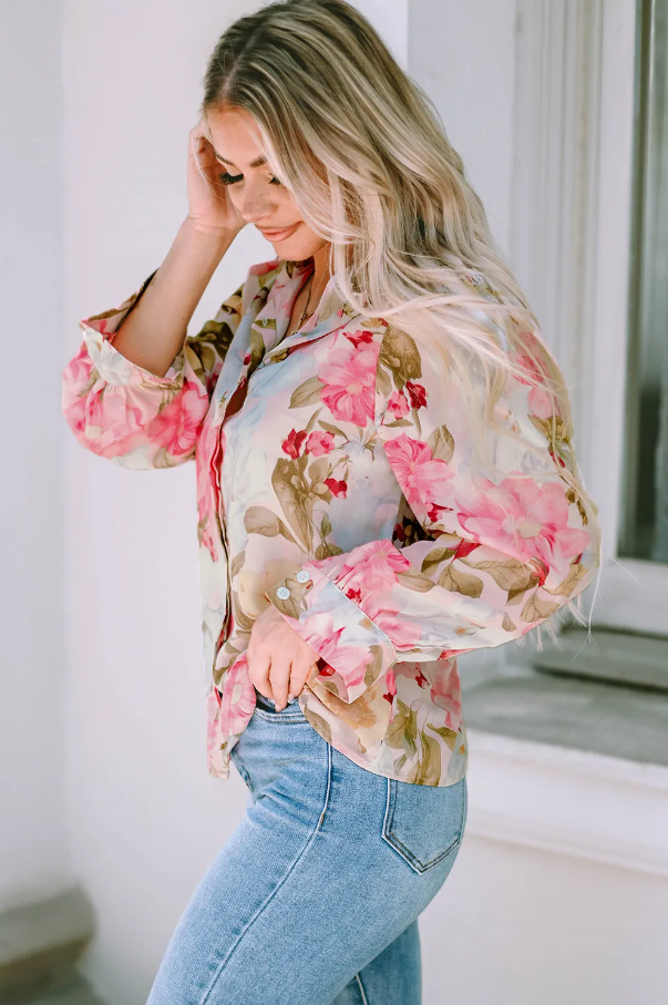 The floral print on this shirt is both trendy and timeless, making it a versatile addition to your wardrobe. The pink color adds a feminine touch, perfect for pairing with jeans, skirts, or tailored trousers. Whether you're heading to brunch with friends or a day at the office, this shirt can be styled in numerous ways to suit your personal taste.