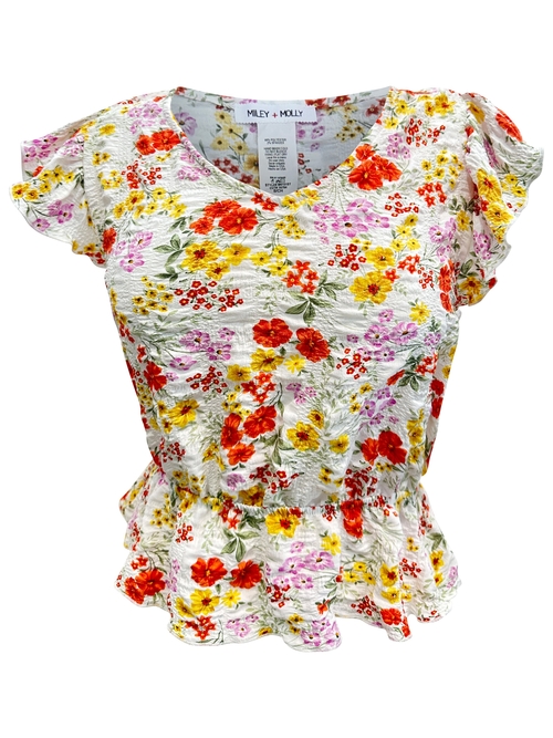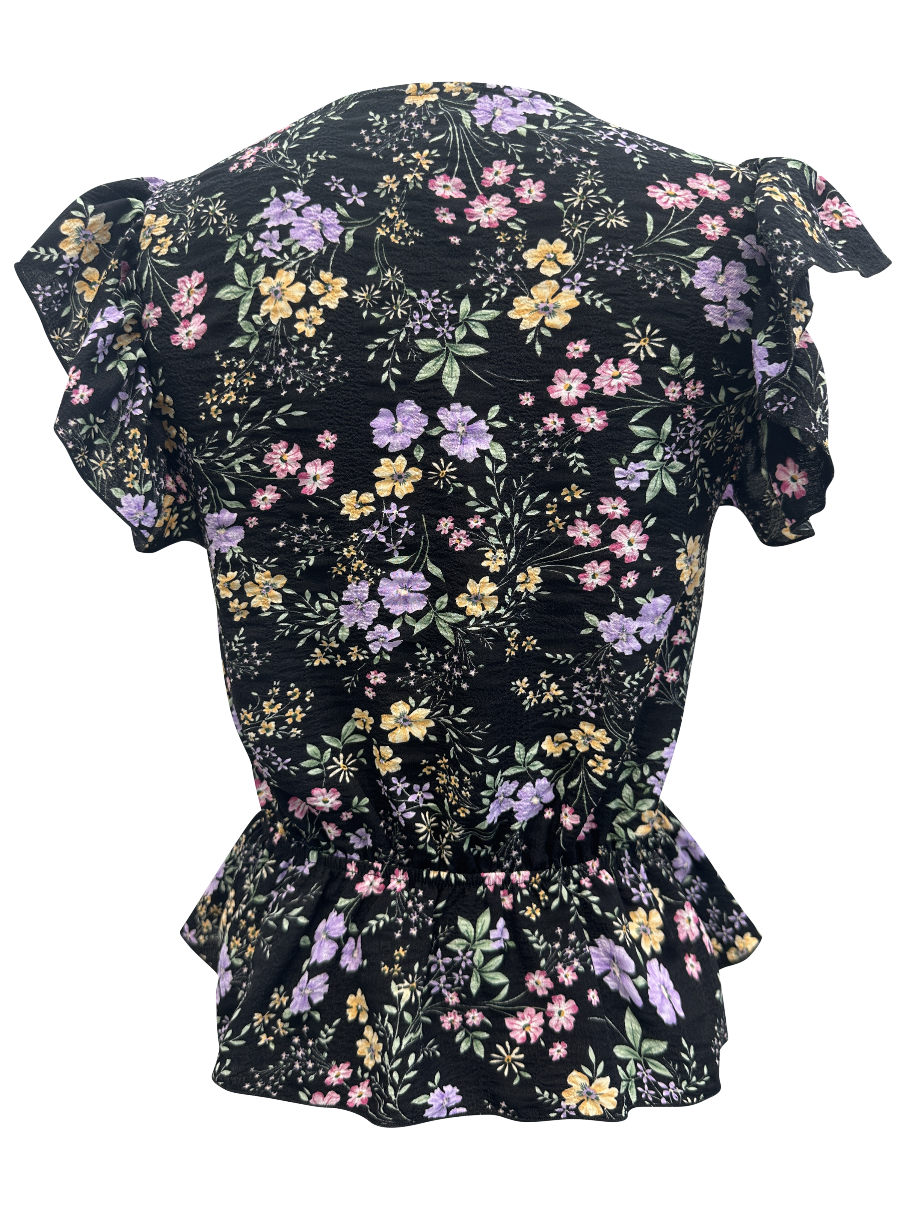 The Floral Ruffle Sleeve Peplum Top is the perfect addition to any fashion-forward wardrobe. This effortlessly feminine and chic top features a beautiful floral print that adds a touch of nature-inspired elegance to your outfit. The flutter sleeves provide a soft, romantic look, while the V neck design enhances your neckline, making it a flattering choice for various body types.