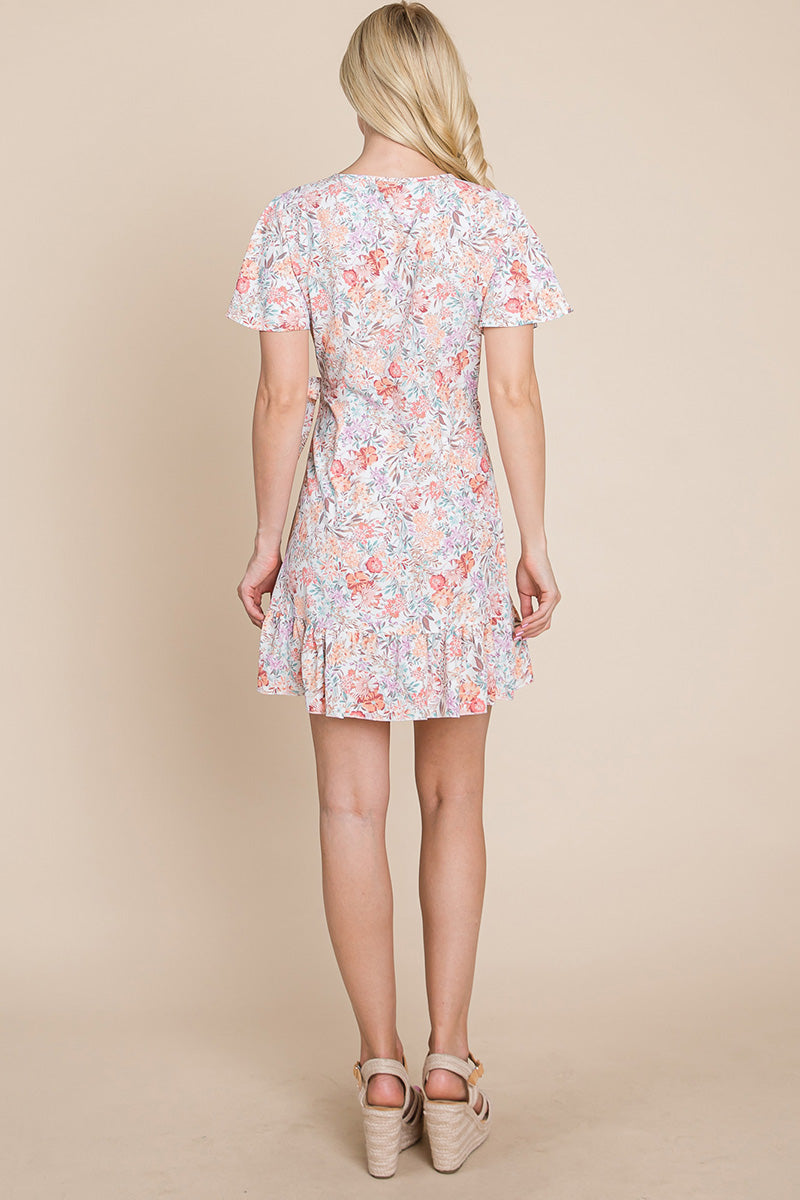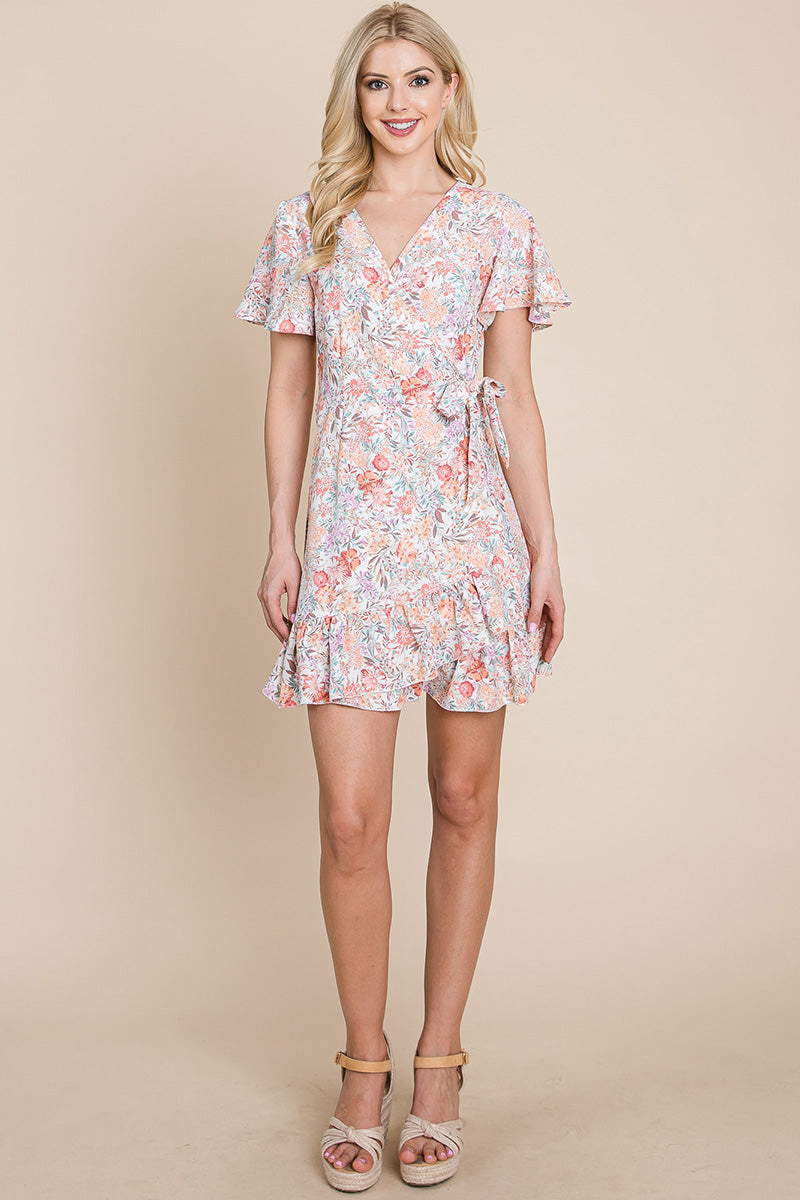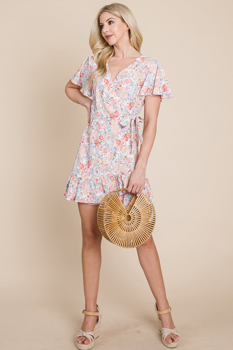 Whether you're dressing it up with heels and statement jewelry or keeping it casual with sandals and a denim jacket, the Floral Ruffled Asymmetrical Hem Wrap Dress is incredibly versatile. It's suitable for a variety of occasions, including weddings, parties, and everyday wear. You can easily transition from day to night with just a few accessory changes.