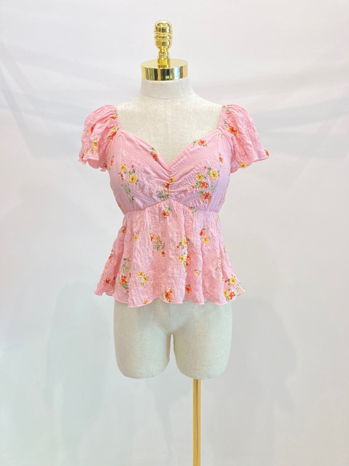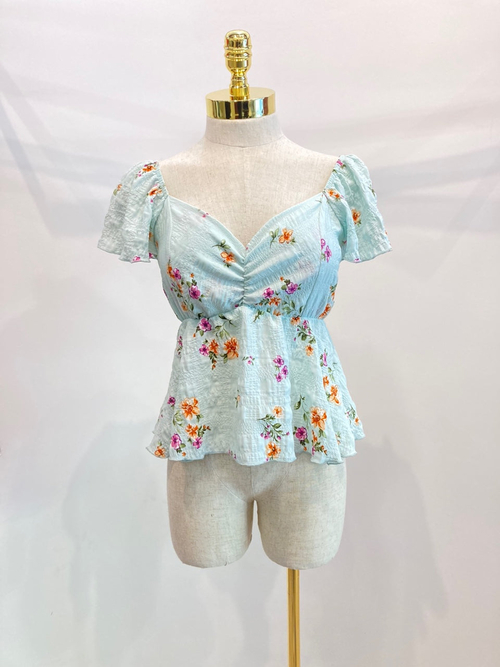 To keep your Floral Smocked Peplum Blouse looking its best, machine wash it in cold water on a gentle cycle. Hang it to dry or tumble dry on low heat. Avoid bleach to maintain the vibrant colors of the floral pattern. Iron on low heat if necessary, but the bubble gauze fabric typically resists wrinkles.