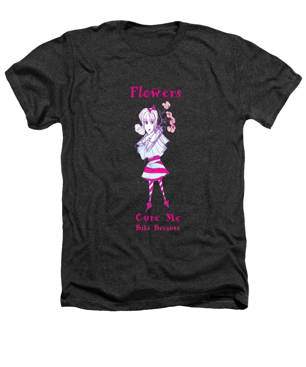 The unique fabric blend of our heathers t-shirts ensures durability while maintaining a lightweight feel. The cotton component offers breathability, making it suitable for warm weather, while the polyester adds strength and helps the shirt retain its shape after multiple washes. This combination makes the Flowers Cure Me Bibi T-Shirt not only comfortable but also long-lasting.
