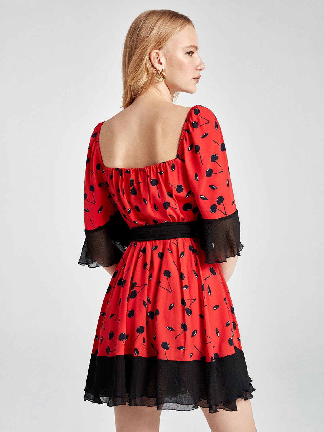 The Flowy Mini Dress is a stunning addition to your spring wardrobe, designed to make you feel both comfortable and stylish. This dress features an elastic waistband that ensures a perfect fit, allowing you to move freely while looking fabulous. The ruffled sleeves and hem add a touch of femininity, making it ideal for various occasions, from casual outings to more formal events.