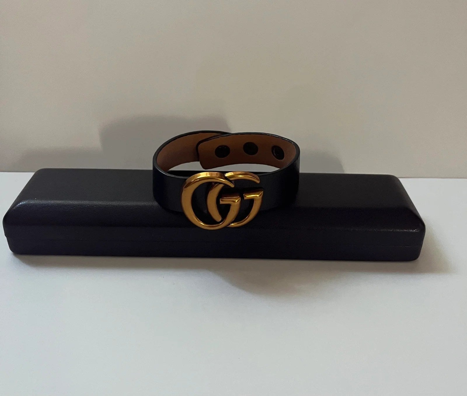 The GG Women Bracelet by Gucci is a stunning accessory that combines elegance and style, perfect for any fashion-forward individual. This designer bracelet is crafted from genuine leather, ensuring durability and a luxurious feel. The striking gold and black color scheme makes it a versatile piece that can be paired with various outfits, whether for a casual day out or a formal evening event.