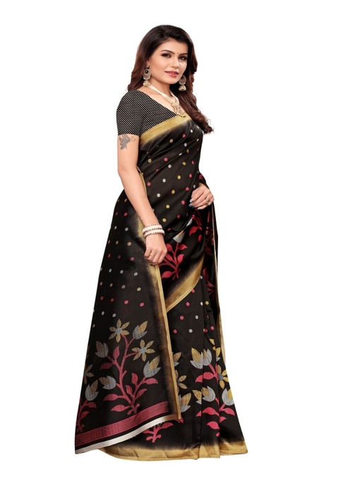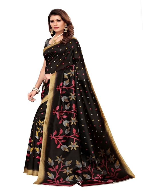Generic Women's Art Silk Saree (Black, 5-6 Mtrs)