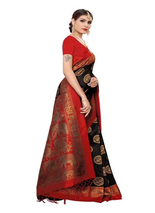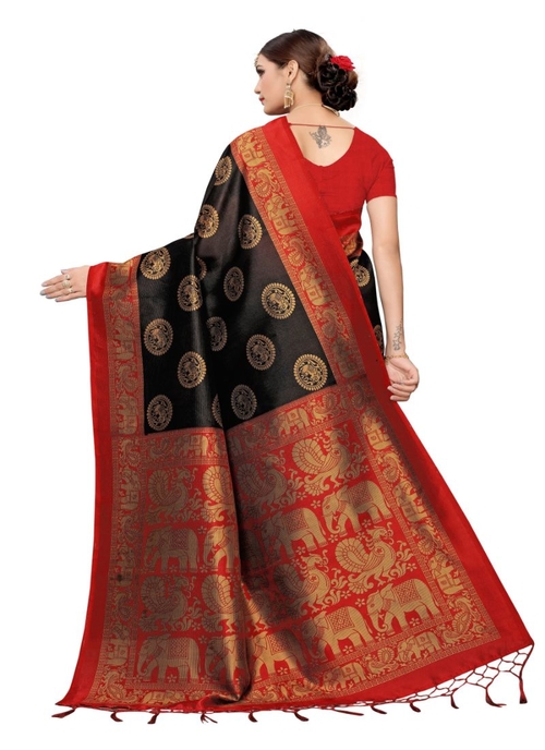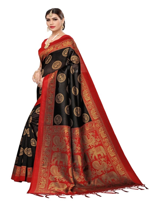 Generic Women's Art Silk Saree (Black , 5-6 Mtrs)