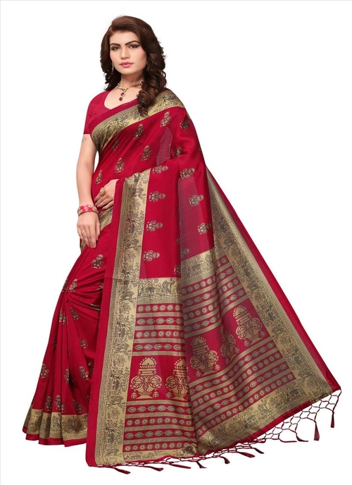 Generic Women's Art Silk Saree (Red, 5-6 Mtrs)