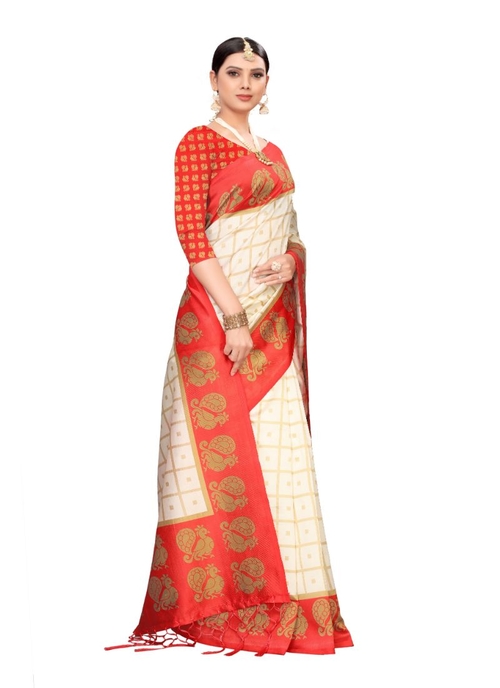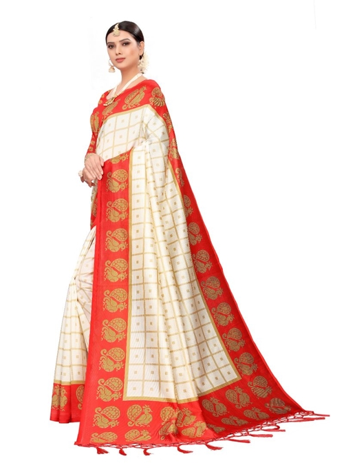 Generic Women's Art silk With Tassels Saree (Red, 5.5-6mtrs).