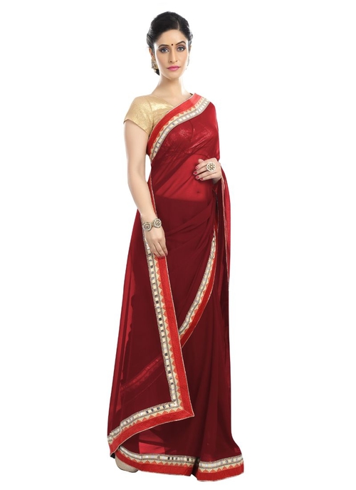 Dropship Generic Women's Chiffon Saree (Maroon, 5-6 Mtrs)
