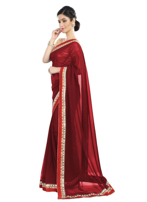 Generic Women's Chiffon Saree (Maroon, 5-6 Mtrs)
