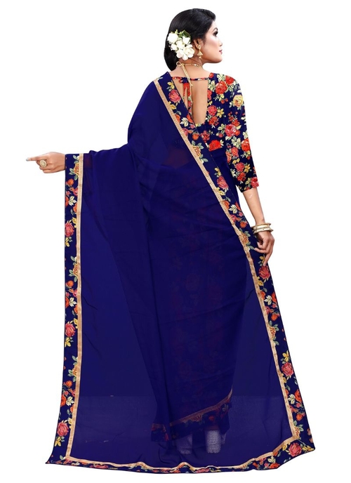 Generic Women's Chiffon Saree (Navy Blue, 5-6 Mtrs),