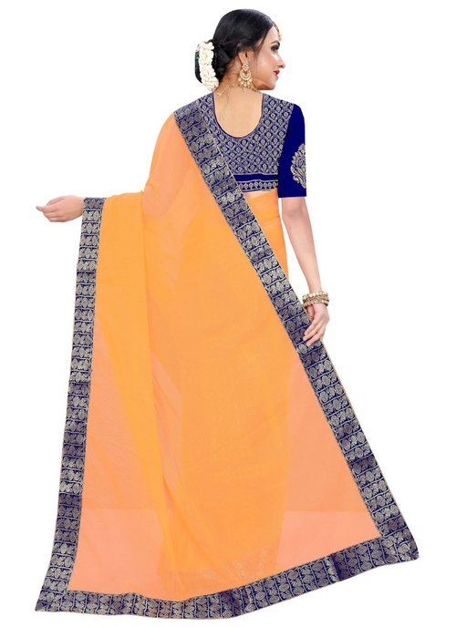 Generic Women's Chiffon Saree (Orange, 5-6 Mtrs),