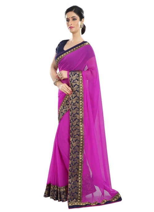Dropship Generic Women's Chiffon Saree (Pink, 5-6 Mtrs)