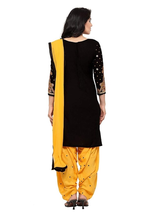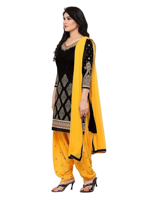 Generic Women's Cotton Salwar Material (Black and Yellow, 2.25mtrs).