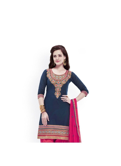 Generic Women's Cotton Salwar Material (Blue and Pink, 2.25mtrs).
