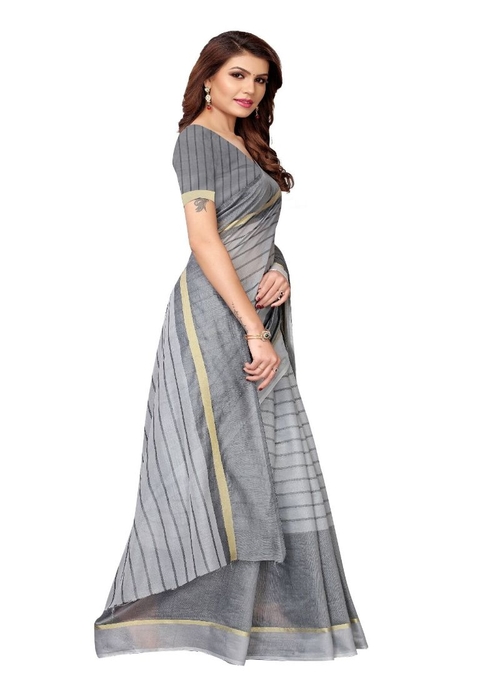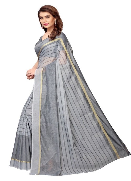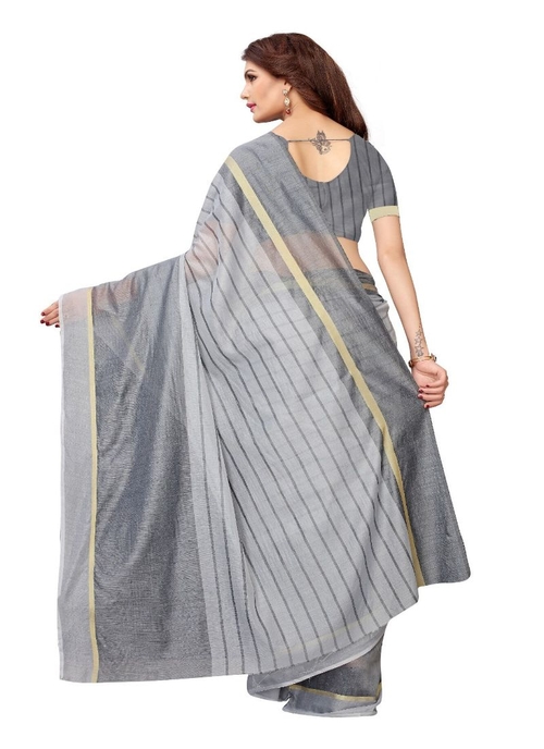 Generic Women's Cotton Saree (Grey, 5-6 Mtrs)