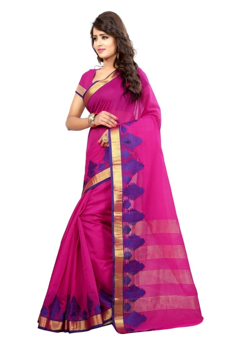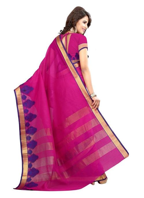 Generic Women's Cotton Saree(Pink, 5.5-6 Mtr) Color : Pink, Material : Cotton , Saree Length : 5.5 Mtr, Blouse Length : 80 Cm, Work Type : Printed and Zari Work, Style : Designer Pallu