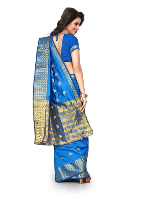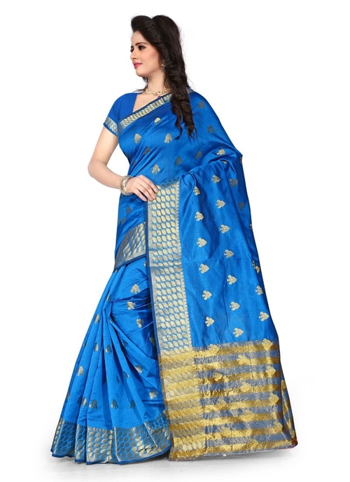 Dropship Generic Women's Cotton Saree(Sky Blue, 5.5-6 Mtr)