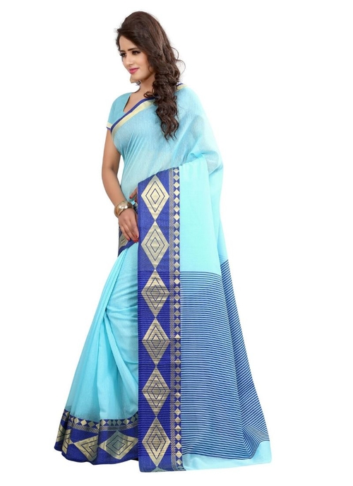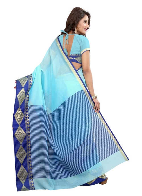 Generic Women's Cotton Saree(Sky Blue, 5.5-6 Mtr)