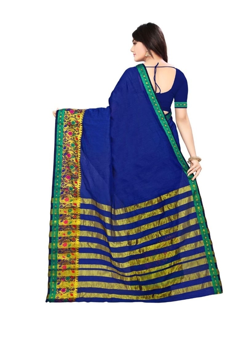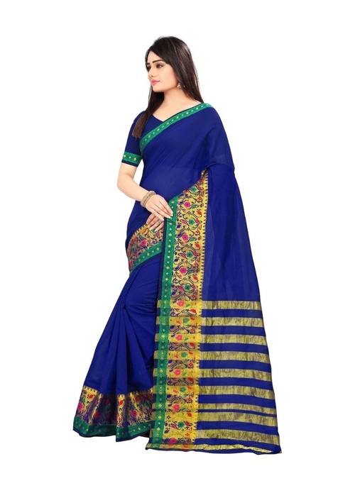 Generic Women's Cotton Silk Saree(Blue, 5.5-6 Mtr) Color : Blue, Material : Cotton Silk, Saree Length : 5.5 Mtr, Blouse Length : 80 Cm, Work Type : Woven and Zari Work, Style : Designer Pallu