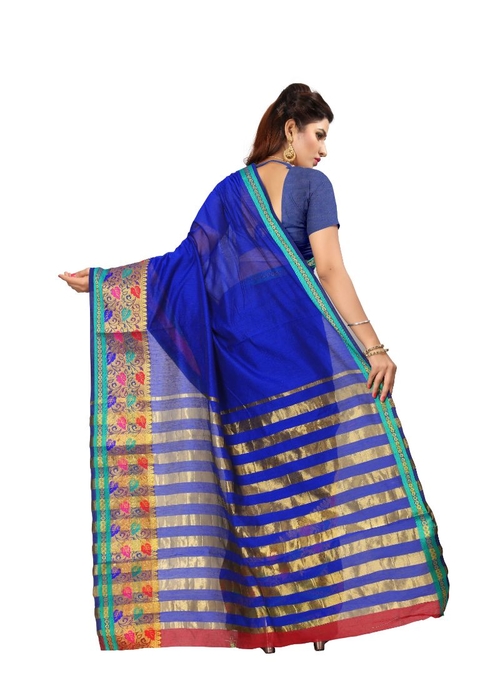 Generic Women's Cotton Silk Saree(Blue, 5.5-6 Mtr) Color : Blue, Material : Cotton Silk, Saree Length : 5.5 Mtr, Blouse Length : 80 Cm, Work Type : Woven and Zari Work, Style : Designer Pallu