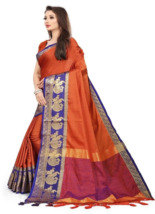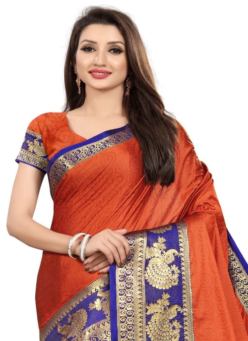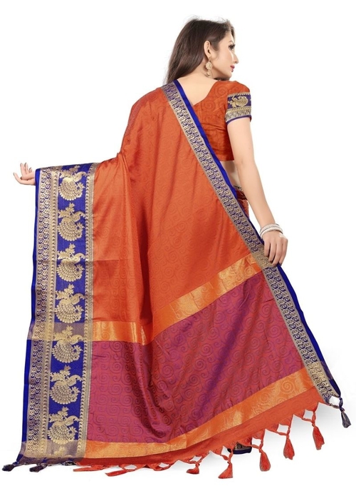 Generic Women's Cotton Silk : Jacquard : Poly Silk Saree (Orange, 5-6 Mtrs)