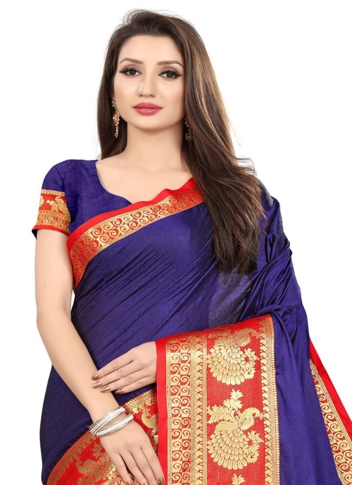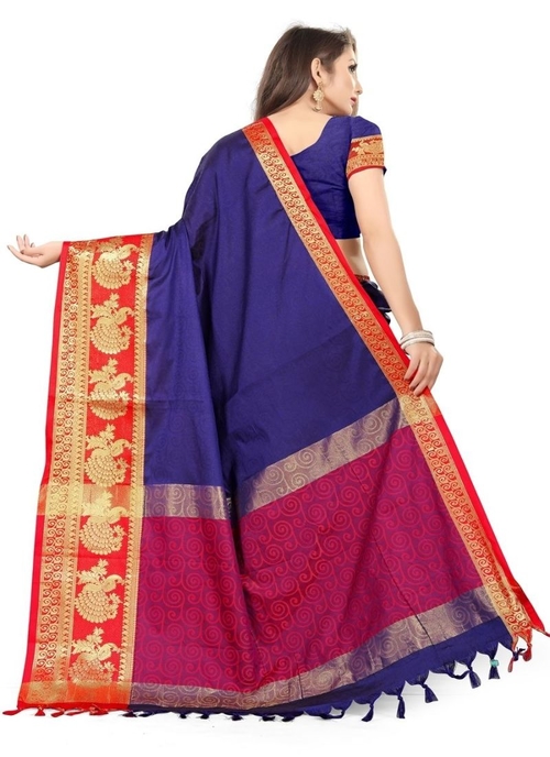 Generic Women's Cotton Silk : Jacquard : Poly Silk Saree (Dark Blue, 5-6 Mtrs)