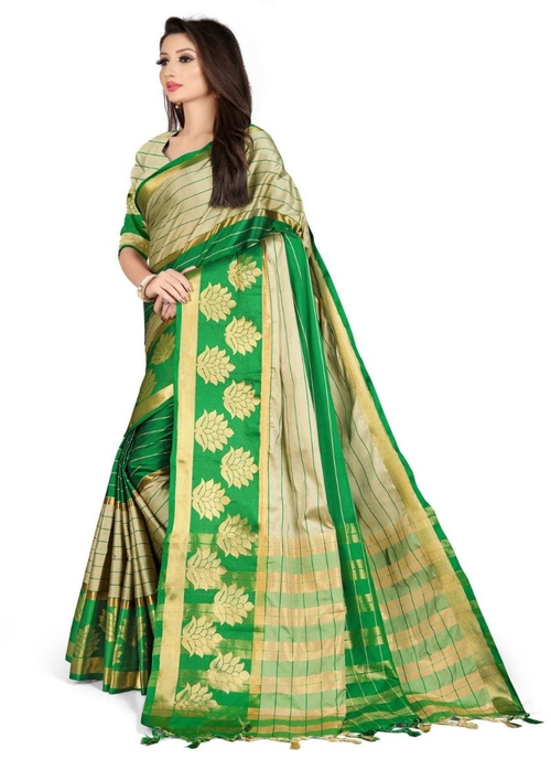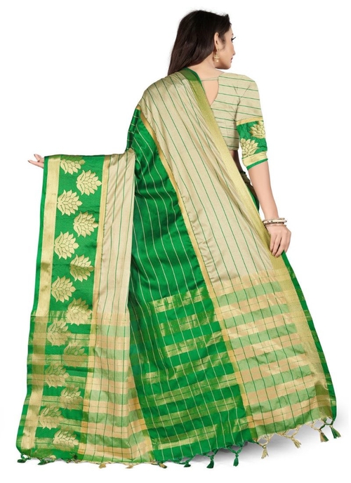 Generic Women's Cotton Silk : Jacquard : Poly Silk Saree (Grey : Green, 5-6 Mtrs)