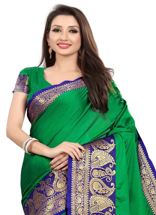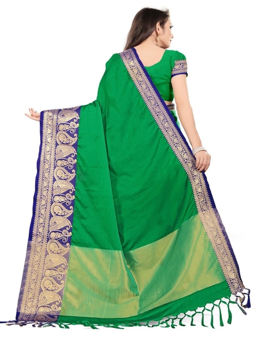Generic Women's Cotton Silk : Jacquard : Poly Silk Saree (Green, 5-6 Mtrs)