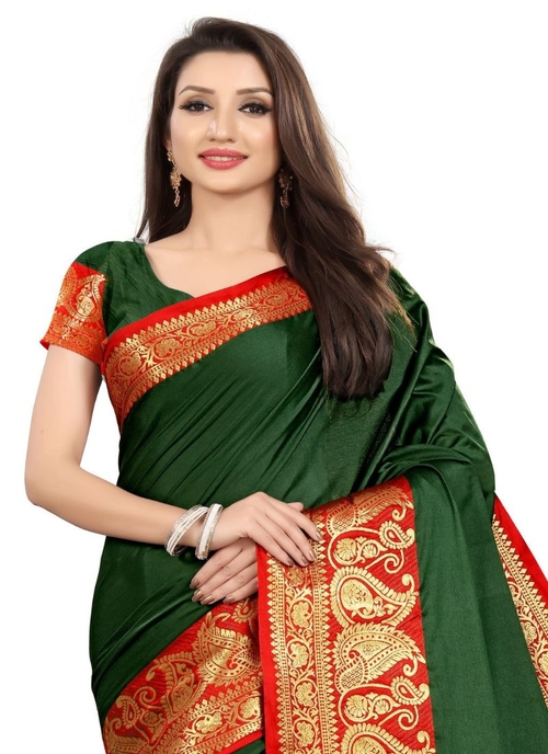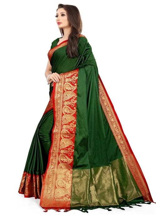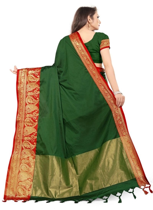 Generic Women's Cotton Silk::Jacquard::Poly Silk (Dark Green, 5-6 Mtrs)