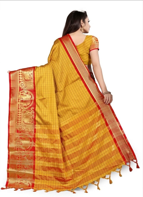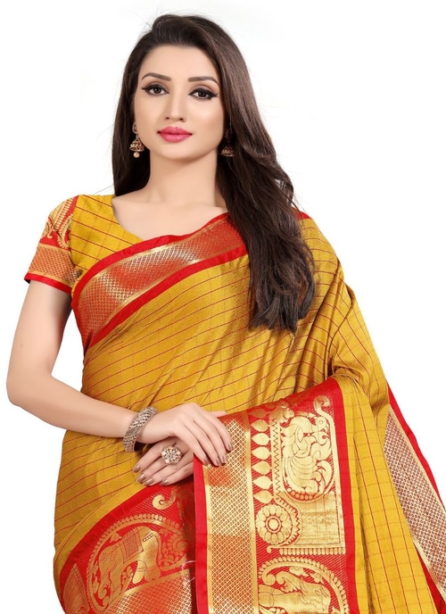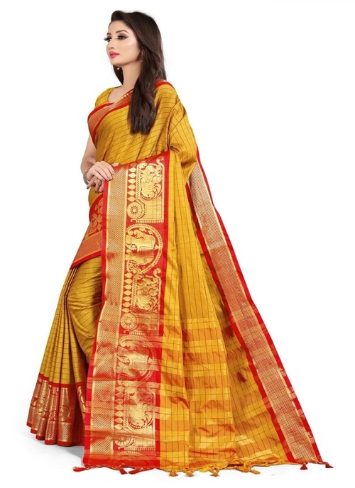 Generic Women's Cotton Silk : Jacquard : Poly Silk Saree (Gold, 5-6 Mtrs)