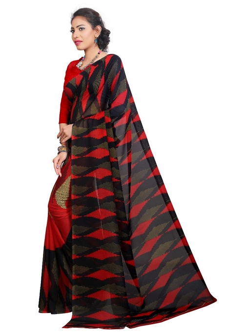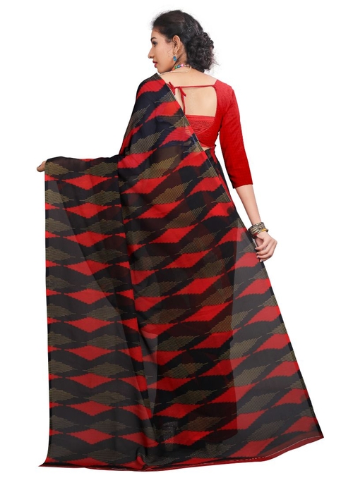 Generic Women's Faux Georgette Saree (Red and Black, 5-6 Mtrs),
